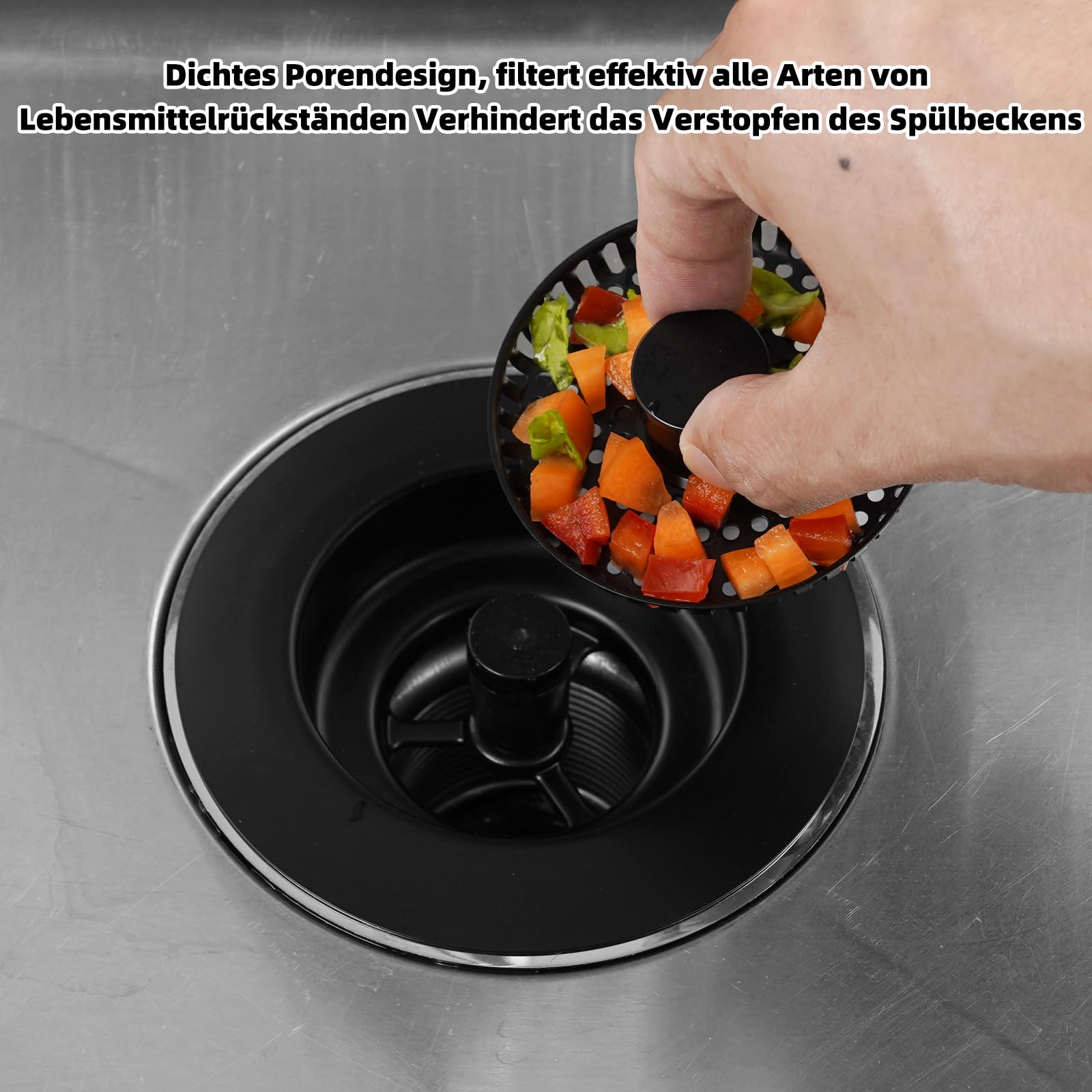 Dieser Spülbecken-Stöpsel ist ein echter Alleskönner! Er hält Wasser, lässt es ab oder filtert Schmutz - ganz wie du willst. Die Edelstahlhülle ist rostfrei, der ABS-Filterkorb hält auch chemische Reiniger aus. Und das Beste: Er ist geruchsundurchlässig und absolut leckfrei! Passt in Spülen mit Loch-Durchmessern von 72-86 mm und einer Tiefe ab 28 mm. Einfach einsetzen, drehen – und deine Spüle ist ready für alles. Kein Gestank, kein Ärger. Einfach genial!