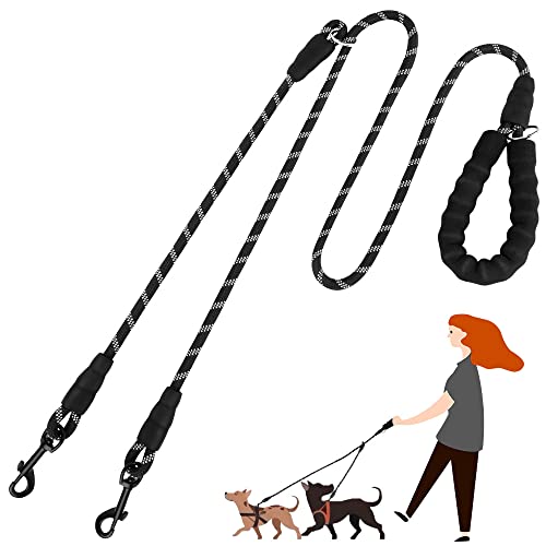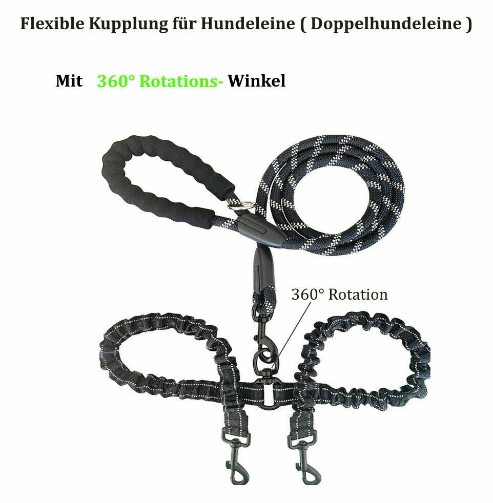 Hundebesitzer mit zwei Vierbeinern aufgepasst! Diese Doppelleine macht das Gassigehen so viel einfacher. Aus super robustem Ripstop-Nylon gefertigt, hält sie auch bei kräftigen Zügen problemlos stand. Besonders praktisch: Die reflektierenden Nähte - damit seid ihr auch bei Dunkelheit gut sichtbar. Es gibt zwei weiche Griffe, sodass du deine Hunde besser kontrollieren kannst. Perfekt für mittelgroße bis große Hunde. Die Leine ist 1,80m lang - genug Platz für beide, aber du hast sie trotzdem unter Kontrolle. Einfach an der Kupplung befestigen und los geht's! Übrigens: Ideal fürs Training oder einfach für den täglichen Spaziergang. Deine Hunde werden's lieben - und du erst!