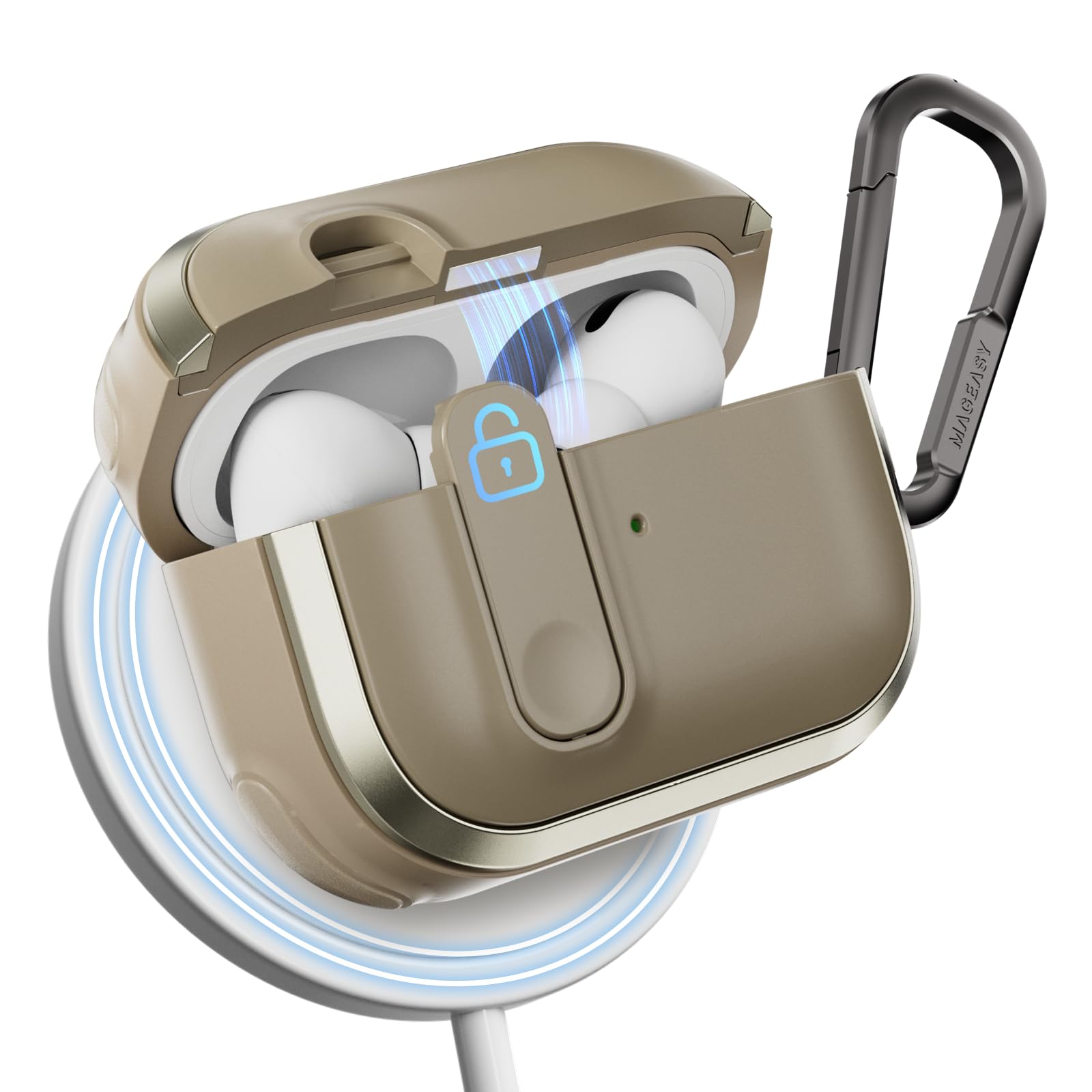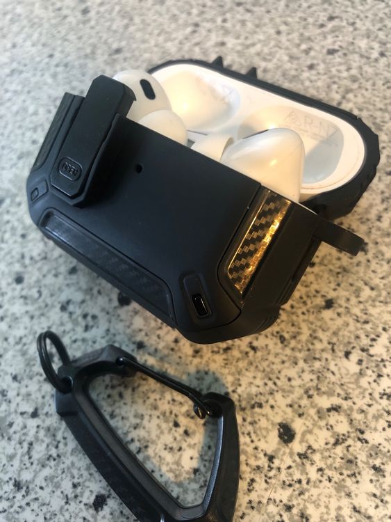 Du hast dir die AirPods Pro 2 geholt und suchst noch die passende Hülle? Die MAGEASY Skin Hülle könnte genau das Richtige sein! Die ist super schlank, liegt gut in der Hand und sieht trotzdem edel aus – dank Aluminiumrahmen und robustem TPU. Und ja, die schützt deine AirPods vor Stößen, Kratzern und Flecken. Das Beste: Du musst die Hülle nicht abziehen, um kabellos zu laden oder den Lightning-Anschluss zu nutzen. Praktisch, oder? Der beiliegende Metall-Karabiner ist auch mega – einfach dranhängen an Tasche oder Gürtel, und deine AirPods sind immer sicher dabei. Die Soft-Touch-Beschichtung fühlt sich übrigens richtig premium an und hinterlässt keine Fingerabdrücke. Also, ob im Gym, auf Reisen oder einfach nur im Alltag – mit der MAGEASY Hülle sind deine AirPods Pro 2 gut geschützt und immer griffbereit. Und hey, die gibt's in schwarz – passt zu allem!