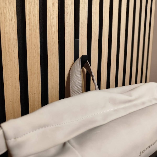 Wow, diese Holz-Haken sind einfach genial für deine Akustikpaneele! Kein Bohren nötig - einfach draufstecken und fertig. Perfekt für Jacken, Taschen oder Schlüssel. Hält bis zu 10 kg, also alles was du so aufhängen willst. Wichtig: Passt nur bei nem Abstand von 13mm zwischen den Panelen, bei anderen Maßen klappt's leider nicht. Das Holz sieht super schick aus und fügt sich perfekt in deine Einrichtung ein. Einfach praktisch und macht deine Akustikwand noch funktionaler! Kein Stress mit Dübeln oder Schrauben - einfach umstecken wenn du willst. Perfekt fürs Homeoffice oder die Musikecke.