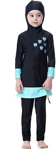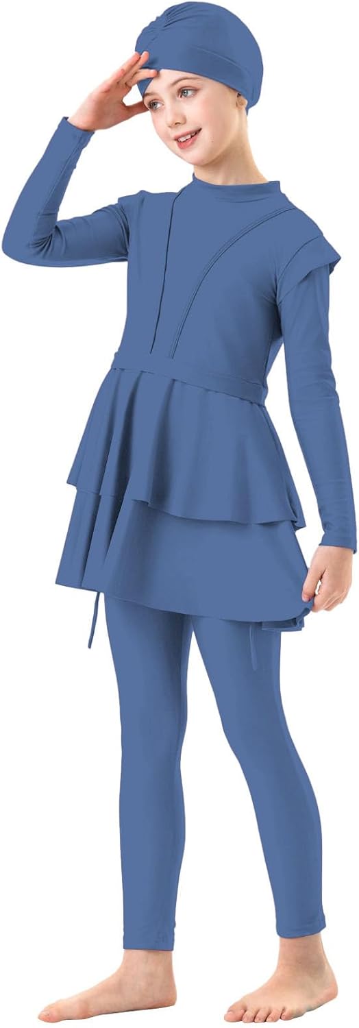 Für muslimische Mädchen - dieser 3-teilige Burkini ist ja mal total praktisch und schick! Aus 80% Polyester und 20% Spandex, atmungsaktiv, schnell trocknend und super weich auf der Haut. Ohne Polsterung für maximalen Komfort beim Schwimmen. Das Set besteht aus langärmeligem Oberteil mit Rüschen, Leggings-Hose und Badekappe/Hijab. Der hochelastische Stoff passt sich perfekt an wachsende Kinder an. Für Mädchen von 2-12 Jahren in verschiedenen Größen erhältlich. Die Badekappe hält die Haare trocken und ist leicht zu tragen. Perfekt für Strand, Schwimmbad, Poolpartys, Urlaub oder Schwimmunterricht. Ob zum Schnorcheln, Surfen oder planschen - damit sind die Mädchen optimal geschützt und können trotzdem unbeschwert Spaß im Wasser haben. Also, wenn du nach ner diskreten aber funktionellen Badebekleidung suchst, ist dieser Burkini genau das Richtige. Einfach anziehen und ins Wasser!