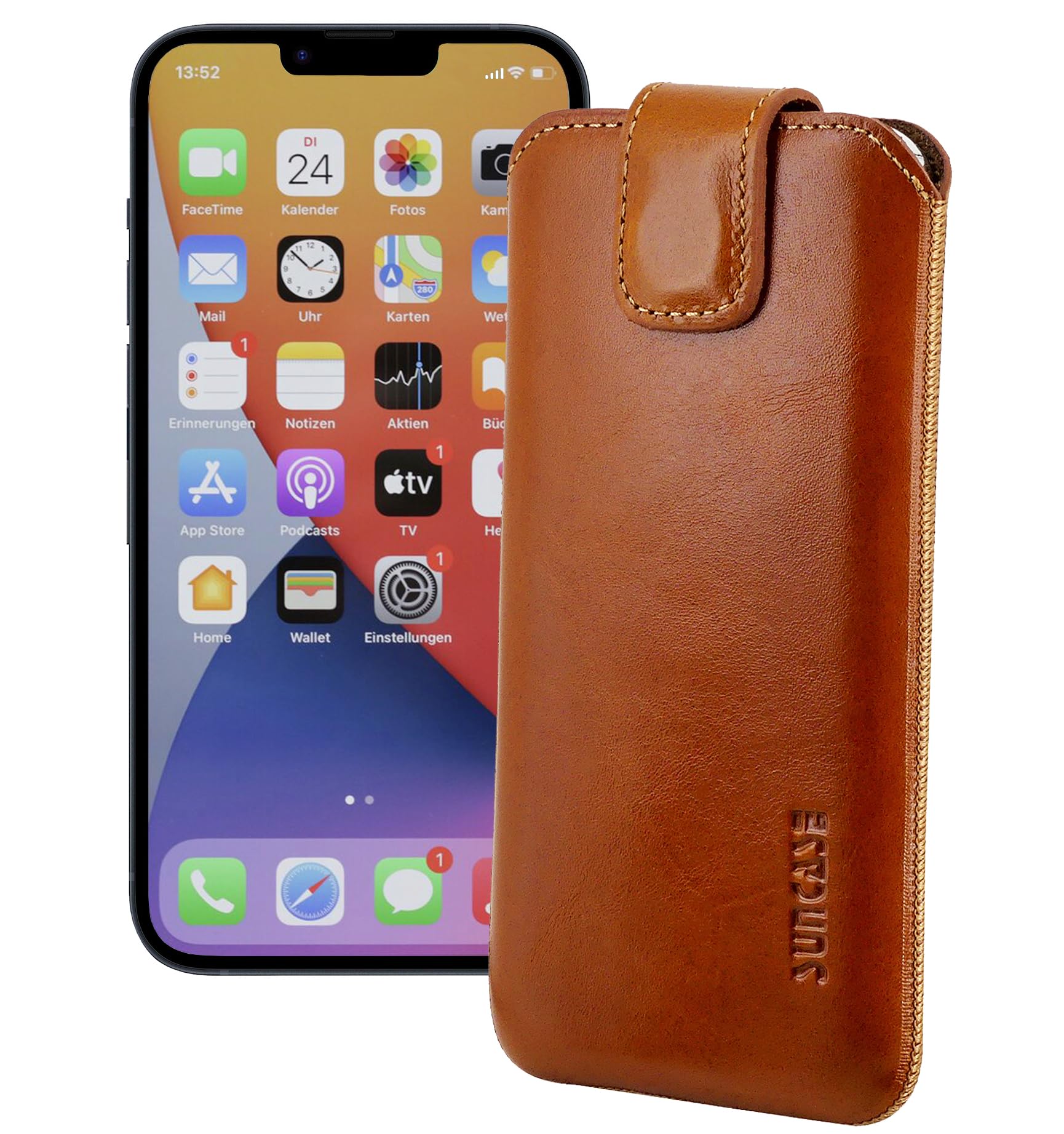 Schütze dein Motorola ThinkPhone in style! Diese echte Ledertasche von Suncase bietet optimalen Schutz vor Kratzern und Schmutz. Aus bestem Rindsleder in Handarbeit gefertigt - jedes Stück ein Unikat. Mit praktischer Rückzugsfunktion: Einfach an der Lasche ziehen und das Handy gleitet heraus. Der Magnetverschluss hält sicher verschlossen. Samtgefüttertes Innere schont das Display. Achtung: Nur für das nackte Smartphone ohne zusätzliche Hülle geeignet! In burned cognac Farbe - edel und zeitlos. Seit 10 Jahren Made in Europe Qualität. Hol dir den perfekten Schutz für dein ThinkPhone!