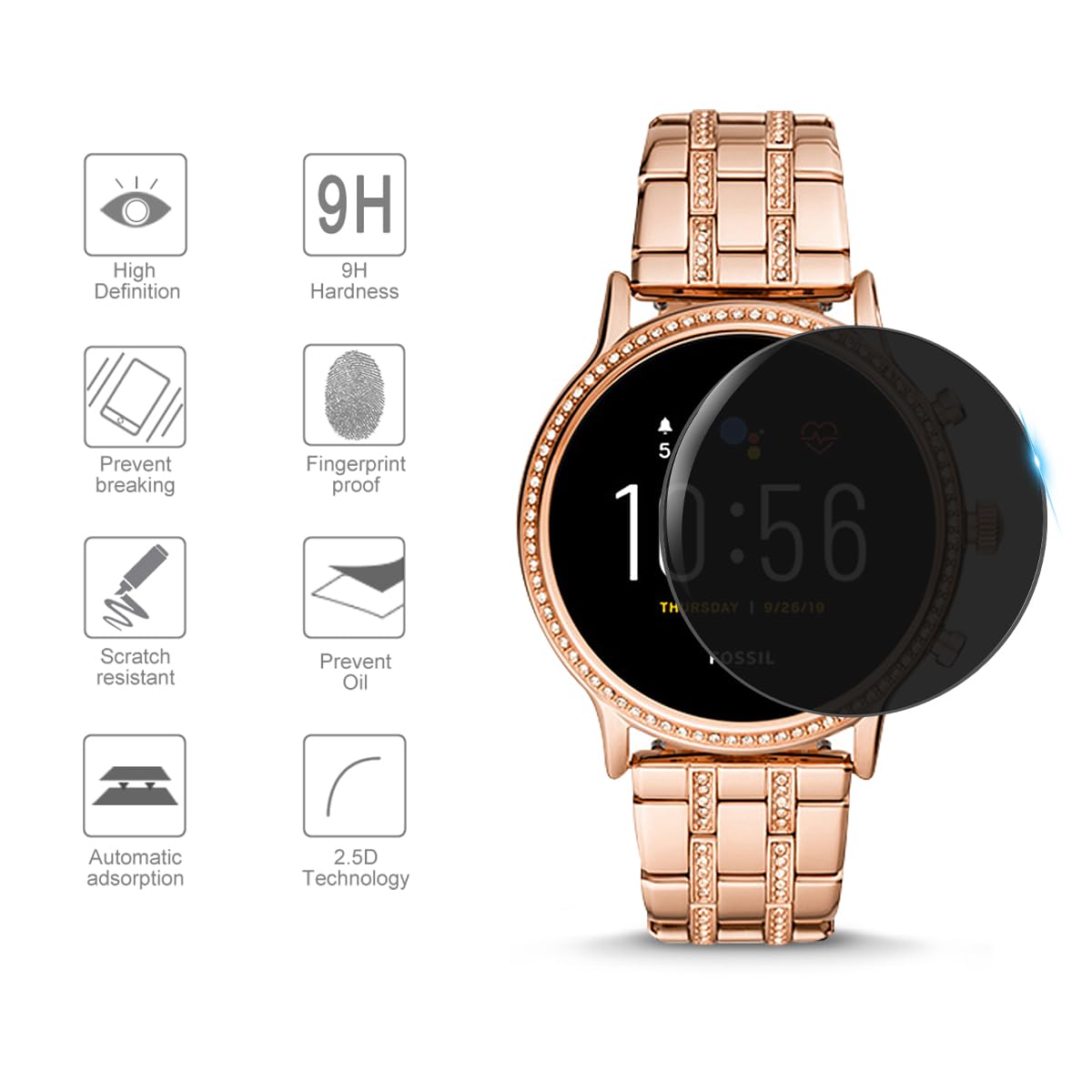 Displayschutz Für Fossil Gen 6/Gen 5 Smartwatch - 2x Transparent + 2x Privacy