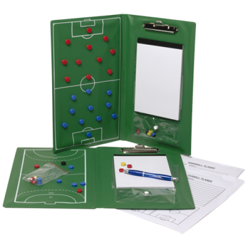 Perfekt für jeden Fußballtrainer! Diese praktische Taktikmappe ist dein bester Freund am Spielfeldrand. Sie lässt sich einfach zusammenklappen und ist super handlich - ideal für Training, Spiele oder Lehrgänge. Das magnethaftende Spielfeld ist der absolute Clou: Du kannst mit den 27 Magneten taktische Aufstellungen zeigen und Veränderungen live demonstrieren. Im Lieferumfang ist sogar ein Notizblock und Kugelschreiber dabei, damit du dir wichtige Notizen machen kannst. Ob für Jugendtraining oder Profi-Mannschaft - diese Mappe gibt dir alles, was du für eine klare Kommunikation mit deinem Team brauchst. Die Magnete halten super auf dem Spielfeld und du kannst deine Taktiken ganz einfach visualisieren. Ein Muss für jeden ambitionierten Trainer!