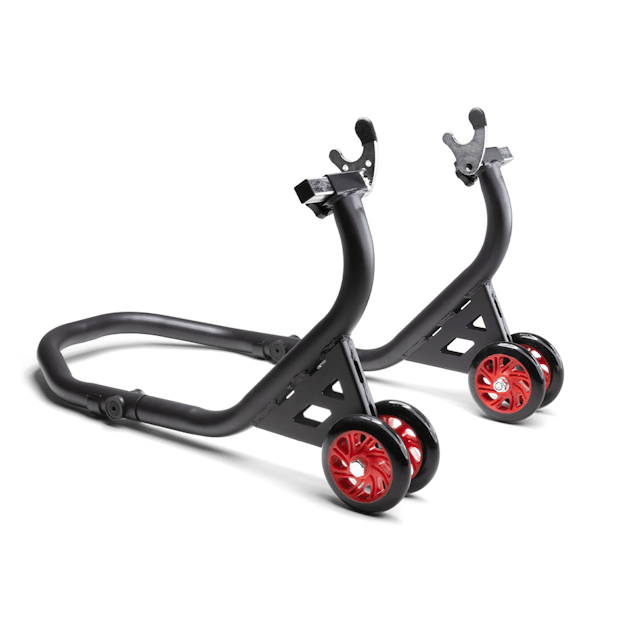 Perfekt für Motorräder ohne Gewindeaufnahmen! Diese Winkelaufnahmen von BTR lösen das Problem bei Motorrädern, die keine Bobbin-Gewinde in der Schwinge haben. Einfach die mitgelieferten Racingaufnahmen austauschen und schon kann's losgehen. Die Auflagen werden einfach in die Heber-Holme gesteckt und mit der Sicherungsschraube fixiert. Die Gummi-Auflageflächen schonen deine Schwinge und sorgen für sicheren Halt. Ideal für Wintereinlagerung, Putzarbeiten oder Reifenwechsel - so bockst du dein Motorrad sicher und stabil auf. Einfache Montage, professionelles Ergebnis. Endlich auch für 'schwierige' Motorradmodelle eine zuverlässige Lösung!