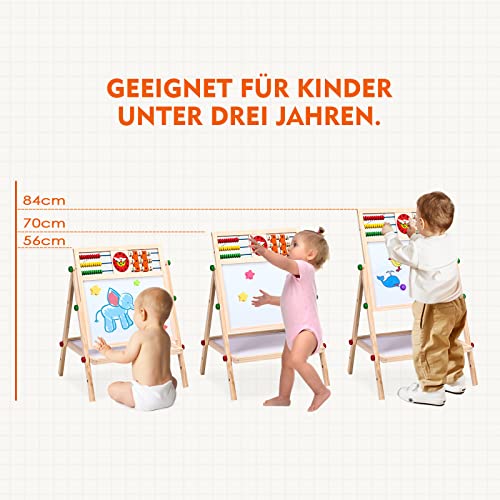 Kreativer Spielspaß mit Peppa Wutz! Diese doppelseitige Maltafel bietet magnetischen Whiteboard-Spaß auf der einen und klassische Kreidetafel auf der anderen Seite. Mit über 100 Magnetteilen, 3 Kreiden, Stift mit Radierer und Schwamm. Alles sicher in einer stabilen Holzbox verstaut. Fördert Feinmotorik, Kreativität und kognitive Entwicklung. Perfekt für Kinder ab 3 Jahren - ob zu Hause oder unterwegs. Ein ideales Geschenk für kleine Peppa-Fans!