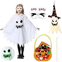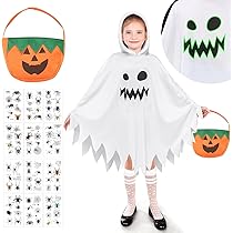 Boo! Mach dein Kind zum coolsten Geist der Stadt! Dieses leuchtende Geister-Kostüm-Set ist der absolute Hit für Halloween, Karneval oder Mottopartys. Das Besondere: Das gruselige Geistergesicht leuchtet im Dunkeln - total unheimlich und mega beeindruckend! Das Kostüm besteht aus weicher, atmungsaktiver Baumwolle, die sich angenehm auf der Haut anfühlt. Im Set ist alles enthalten, was kleine Geister brauchen: das leuchtende Geisterkostüm, eine gruselige Grimassenmaske, Handschuhe und eine süße Kürbis-Tragetasche für die Süßigkeiten-Ernte. Es gibt zwei Größen: S für Kinder von 3-7 Jahren (95-125 cm) und L für 8-12-Jährige (125-160 cm). Die lockere Passform sorgt für maximalen Komfort beim Herumgeistern. Das perfekte Geschenk für kleine Gruselfans!