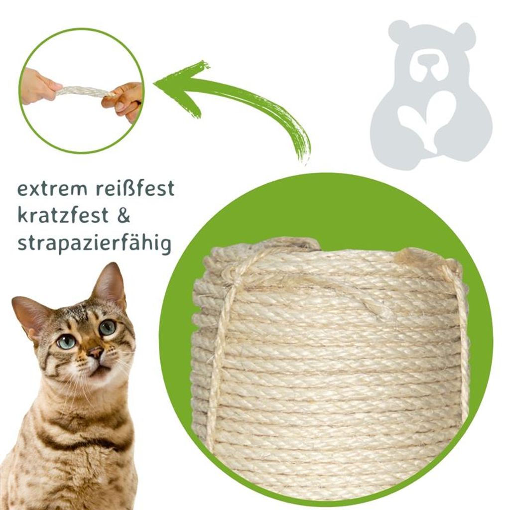 Perfekt für alle Katzenbesitzer! Dieses natürliche Sisalseil besteht zu 100% aus reiner Jute ohne chemische Zusätze - komplett unbedenklich für deine Samtpfote. Mit 30 Metern Länge und 5mm Durchmesser hast du genug Material, um mehrere Kratzbäume zu umwickeln oder kaputte Stellen zu reparieren. Das robuste, viersträngig geflochtene Seil hält auch den schärfsten Katzenkrallen stand. Einfach mit Heißklebepistole befestigen - kein Spezialwerkzeug nötig. Übrigens: Das Seil eignet sich auch super für Bastelprojekte oder rustikale Deko. Deine Katze wird es lieben, daran zu kratzen und zu spielen! Ob für Kratzsäulen, Kratzbretter oder ganze Katzenbäume - mit diesem Seil machst du deine Katzenmöbel wieder wie neu. Ein Muss für jeden Katzenhaushalt!