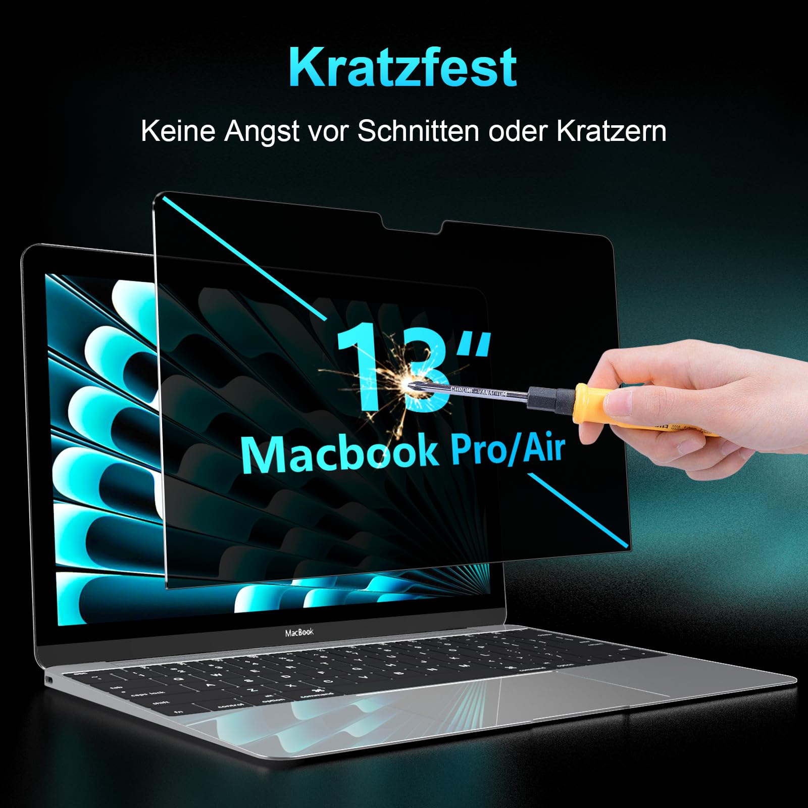 Pssst! Mit dieser Blickschutzfolie von JEHOO sieht nur DU, was auf deinem MacBook passiert! Perfekt für MacBook Pro 13 Zoll (2016-2022, M1, M2) und MacBook Air 13 (2018-2021, M1). Von vorne siehst du alles gestochen scharf, aber sobald jemand von der Seite guckt (ab 60 Grad), wird's nur noch verschwommen. Perfekt für Bahn, Café oder Büro! Schützt auch deine Augen: Blockt 99,9% Strahlung und 96% UV-Licht - weniger Augenmüdigkeit auch bei langem Arbeiten. Aus umweltfreundlichem PET-Material, geruchlos und gesundheitlich unbedenklich. Beim Abziehen keine Klebereste! Maßgeschneidert für dein MacBook, passt 1:1 ohne Blasen oder Lücken. Die matte Oberfläche reduziert Reflexionen auf nur 5,8%. Einfach anbringen und die ursprüngliche Bildschirmqualität bleibt erhalten. Endlich ungestört arbeiten ohne neugierige Blicke - deine Daten gehören nur dir!
