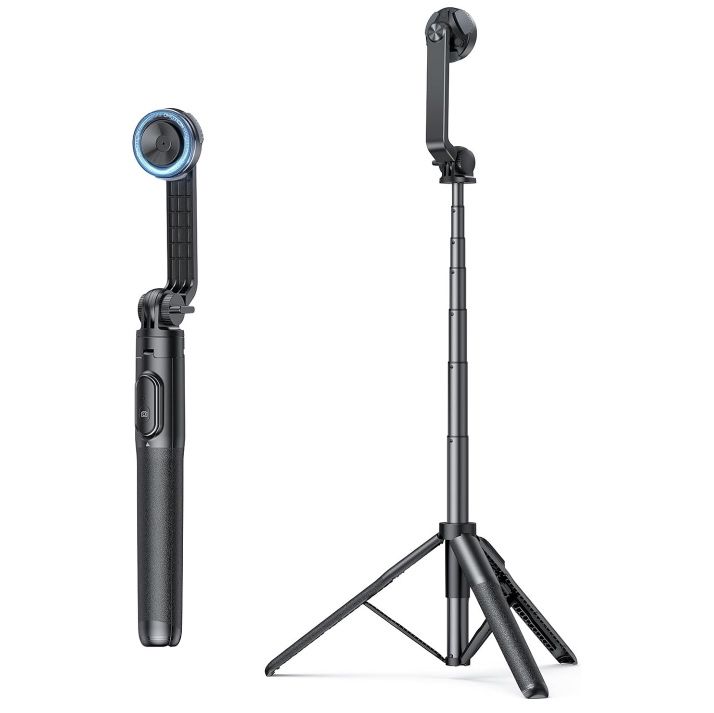 Boah, dieses OMOTON Handy Stativ ist ja mal richtig praktisch! Mit den ultra-starken N52 Magneten haftet dein Smartphone bombenfest - einfach dranhalten und schon sitzt es. Kein langes Rumgefummel mehr mit Klemmen oder Halterungen.\n\nDas Tolle: Du kannst es auf bis zu 23cm ausziehen und es ist trotzdem total leicht mit nur 158g. Wenn du unterwegs bist, faltest du es einfach zusammen und steckst es in die Tasche. Perfekt für Reisen, Vlogging oder einfach für bessere Video-Calls.\n\nDie 360° Drehbarkeit ist der absolute Game-Changer! Du kannst dein Handy in jede erdenkliche Position bringen - Hochformat, Querformat, schräg, was auch immer du brauchst. Die 3-Achsen-Einstellbarkeit gibt dir wirklich jeden Winkel den du dir vorstellen kannst.\n\nUnd das Beste: Es funktioniert nicht nur als Stativ für den Tisch, sondern haftet auch an Metalloberflächen! Im Fitnessstudio am Gerät, am Kühlschrank in der Küche oder an der Metalltür - überall wo Metall ist, kannst du dein Handy befestigen.\n\nKompatibel ist es mit allen iPhones ab Series 12 und MagSafe-Hüllen. Für Android-Geräte liegt ein magnetischer Metallring bei. Einfach ein vielseitiges Tool, das in keiner Handytasche fehlen sollte!