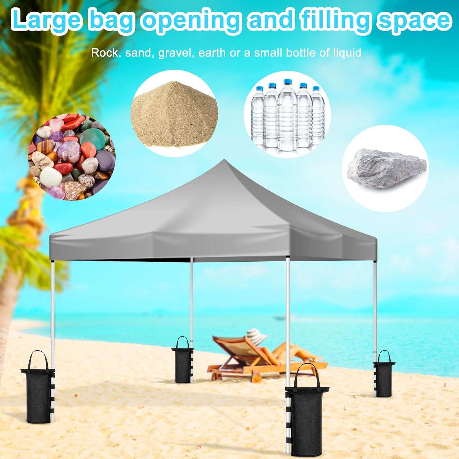 Mach deinen Pavillon oder dein Zelt sturmsicher! Diese vier Sandsäcke aus robustem 600D Oxford-Stoff sind die perfekte Lösung, um dein Outdoor-Setup bei Wind und Wetter standsicher zu machen. Die Taschen sind innen mit einer PVC-Beschichtung versehen, die sie wasserabweisend macht, und das doppelt genähte Design sorgt für extra Halt. Du kannst sie mit Sand, Kies, Steinen oder sogar Schnee befüllen – einfach das nehmen, was gerade da ist. Der Klettverschluss macht das Befüllen und Schließen super einfach, und die robusten Tragegriffe erleichtern den Transport. Egal ob für Pop-up-Zelte, Vordächer, Markisen, Trampoline oder Camping-Ausrüstung – diese Gewichte geben dir die nötige Sicherheit. Und kein Stress mit Reißverschlüssen, die kaputtgehen könnten! Einfach befüllen, mit dem Klettband verschließen und an den Schlaufen des Pavillons befestigen. So steht dein Outdoor-Bereich sicher und du kannst entspannt die Zeit im Freien genießen. Denk dran: Sand ist nicht im Lieferumfang enthalten, aber das Finden macht ja auch Spaß!