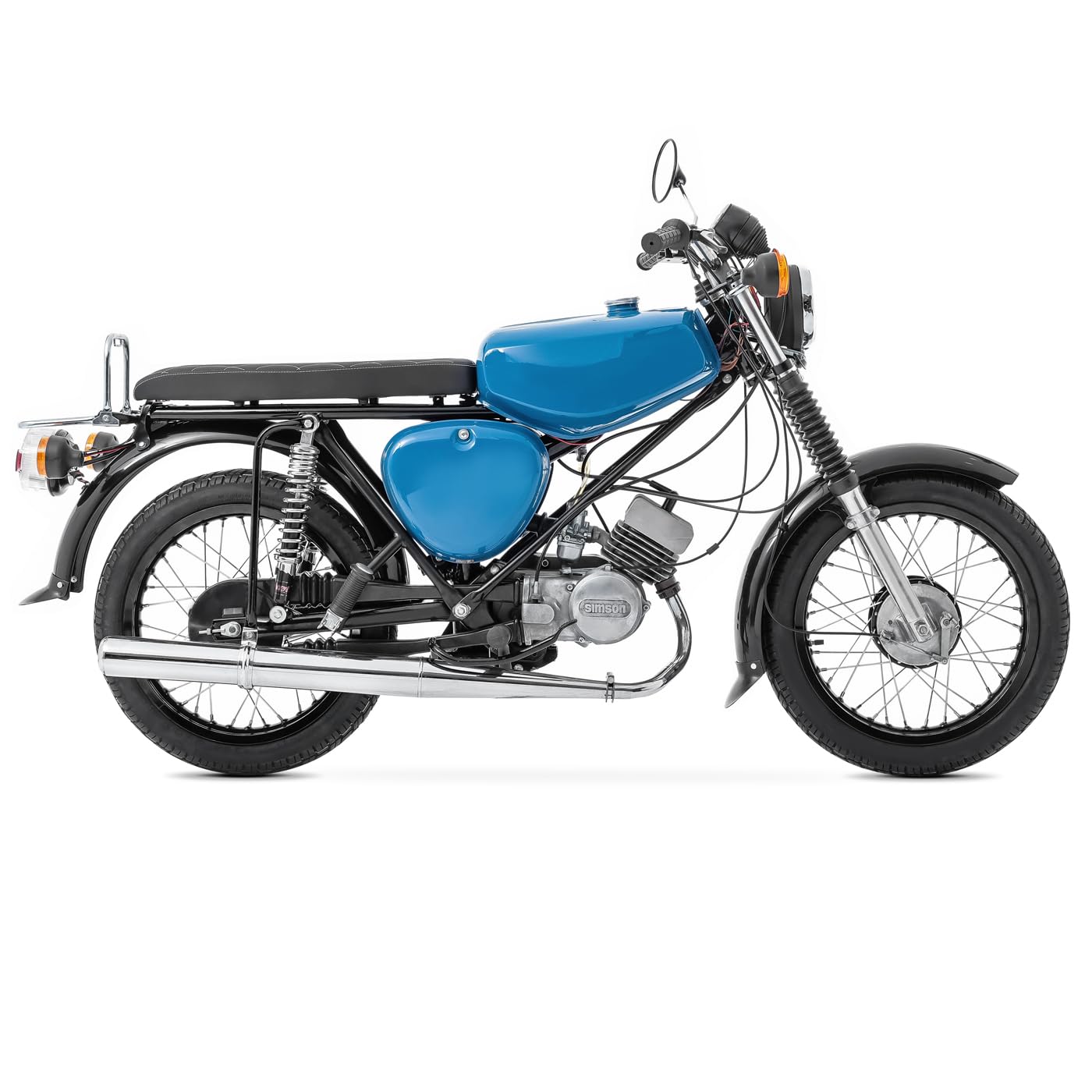 Dein Simson-Sitz ist durchgesessen? Diese flache Sitzbank von Craftride bringt neuen Komfort auf dein Mokick! Perfekt passend für S50, S51 und S70 Modelle - einfach den alten Sitz abmontieren, neuen drauf und fertig. Mit den Maßen 61x21x6cm sitzt du wieder richtig bequem, dank straffem Verbundschaum. Der hochwertige Kunstleder-Bezug sieht nicht nur gut aus, sondern ist auch robust gegen Witterung. Die stabile Bodenplatte aus ABS-Kunststoff gibt dem Sitz Halt und Langlebigkeit. Die originalen Befestigungspunkte passen genau, sodass du keine Bastelei brauchst. Ob für die tägliche Fahrt zur Arbeit oder entspannte Ausflüge - mit diesem Sitz machst du keine schlechte Figur. Das schwarze Design unterstreicht den zeitlosen Look deiner Simson. Einfacher Einbau, guter Sitzkomfort und langlebiges Material - was will man mehr? Dein Rücken wird's dir danken! Perfekter Ersatz für verschlissene Original-Sitze.