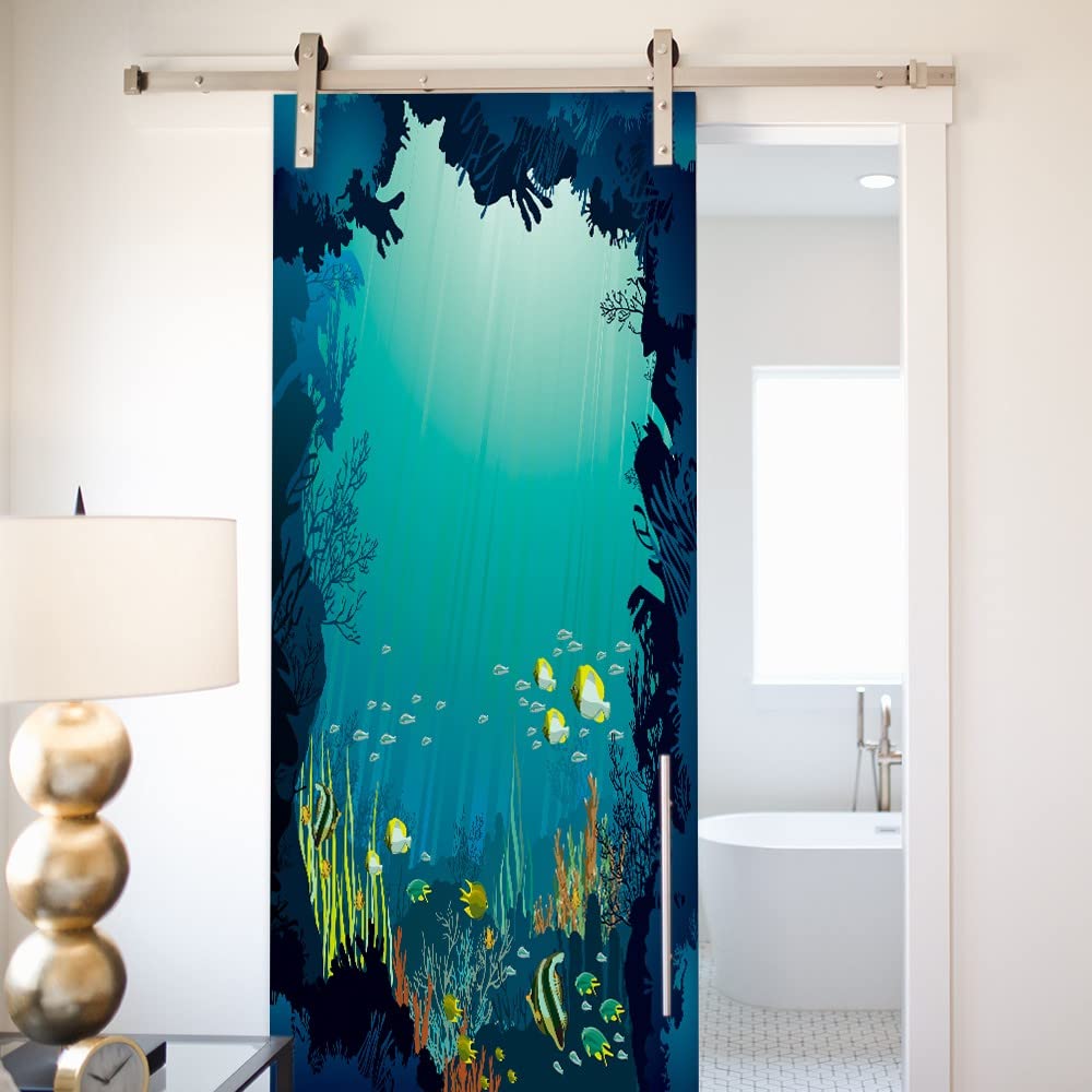 Verwandle deine Tür in ein Kunstwerk - ganz ohne Handwerker! Diese selbstklebende Tür Tapete im skandinavischen Fisch-Design bringt frischen Wind in dein Zuhause. Mit den Maßen 90x200 cm (bestehend aus 2x45x200 cm) passt sie auf die meisten Türen.