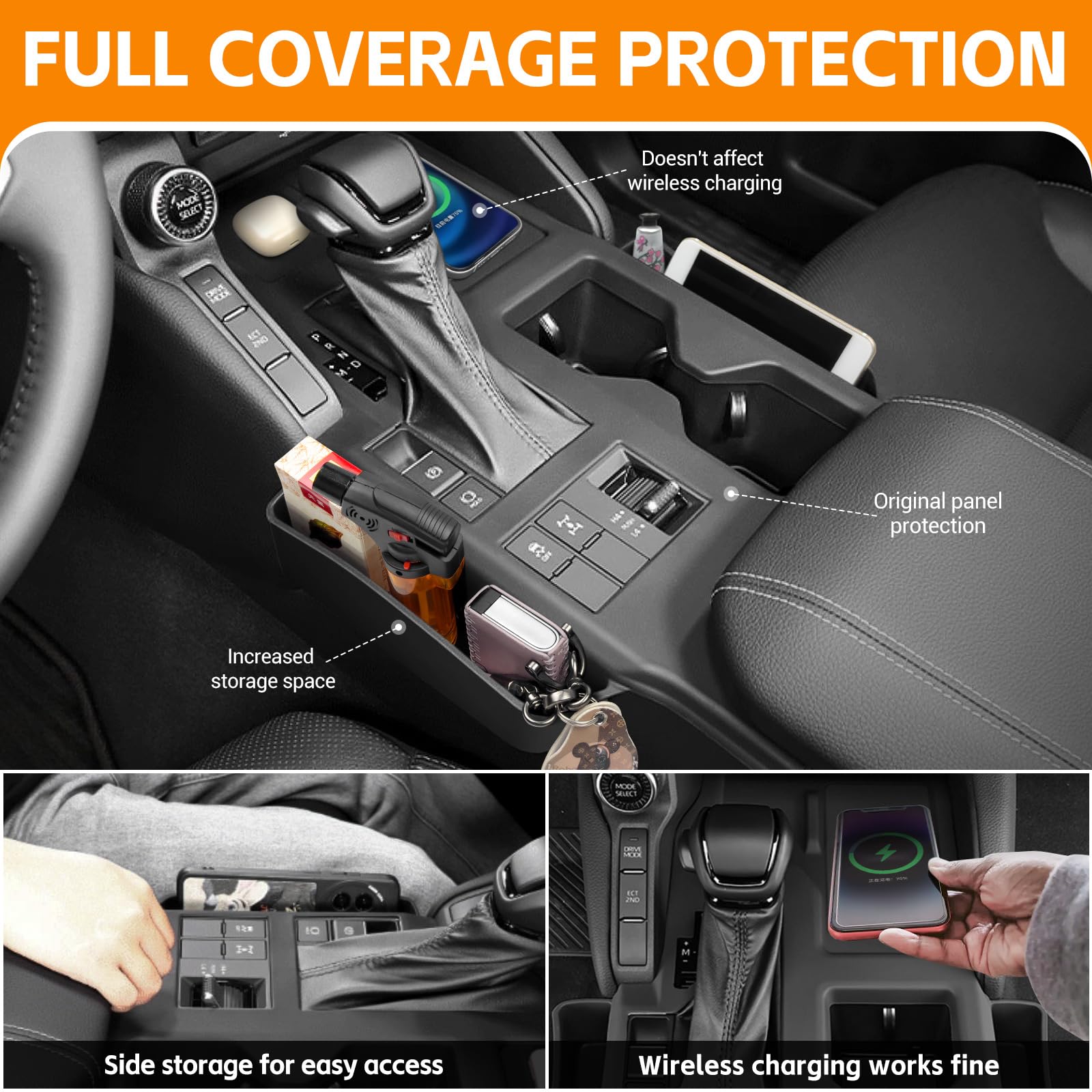 Toyota Land Cruiser 250 Besitzer, diese Mittelkonsolen-Abdeckung ist genau das, was euch gefehlt hat! Aus hochwertigem ABS-Kunststoff in schwarz - robust und langlebig! Perfekt lasergeschnitten für exakte Passform - nur für Modelle mit kabelloser Ladefunktion! Schafft extra Stauraum für Handy, Schlüssel und Karten - endlich keine Unordnung mehr in der Konsole! Einfach einsetzen - kein Werkzeug nötig! Und wenn's mal dreckig wird: Einfach mit feuchtem Tuch abwischen! Sieht aus wie original und macht das Auto-Innenleben so viel organisierter! Einfach bestellen und sich über mehr Ordnung im Auto freuen!