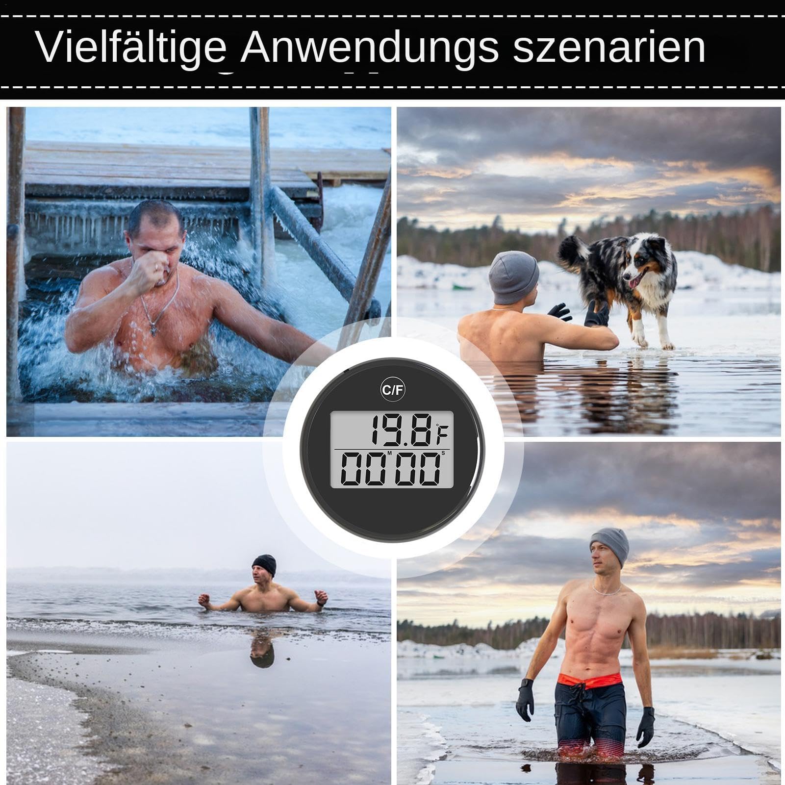Eisbaden liegt voll im Trend - aber mit diesem Temperaturmesser machst du es richtig professionell! Das kleine Teil schwimmt einfach im Wasser und zeigt dir genau die Temperatur an - von -20°C bis 70°C. Aus hochwertigem ABS-Material, komplett wasserdicht (IPX6) und super robust. Mit praktischem Timer: Einfach ins Wasser werfen und er zählt automatisch mit, wie lange du schon badest. Die LED-Anzeige ist auch bei schlechtem Licht gut ablesbar. Perfekt für alle die mit Eisbaden ihre Regeneration unterstützen wollen. So kannst du die Temperatur genau im Auge behalten und optimale Ergebnisse erzielen. Die Batterie hält ewig und das Design ist wirklich durchdacht. Einfach ins Wasser legen und sofort loslegen - mehr Komfort beim Eisbaden geht kaum! Ob für den heimischen Garten, See oder Schwimmbad - mit diesem Thermometer weißt du immer genau was Sache ist. Einfach bestellen und dein Eisbad-Erlebnis auf das nächste Level bringen!