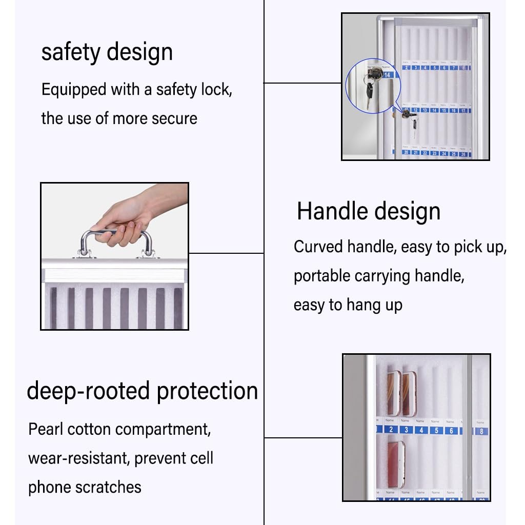 Hey Lehrer und Büro-Leute! Diese TOOSOAR Handygarage ist die Lösung für das Handy-Chaos! Platz für 24 Smartphones - jedes Fach nummeriert und mit weicher Polsterung, damit die Displays nicht zerkratzen. Aus Aluminium - stabil und rostfrei. Kann getragen oder an die Wand gehängt werden - flexibel für jeden Raum. Perfekt für Klassenzimmer - Schüler geben Handys ab und konzentrieren sich besser. Auch super für Besprechungsräume, Werkstätten oder Reparatur-Shops. Jedes Fach hat ne klare Nummer - kein Durcheinander! Griff oben für einfachen Transport, Aufhängeöse für feste Montage. Macht das Management so viel einfacher! Ob in der Schule, Bibliothek oder Firma - eine Box, die wirklich was bringt. Einfach aufstellen und das Handy-Problem ist gelöst!
