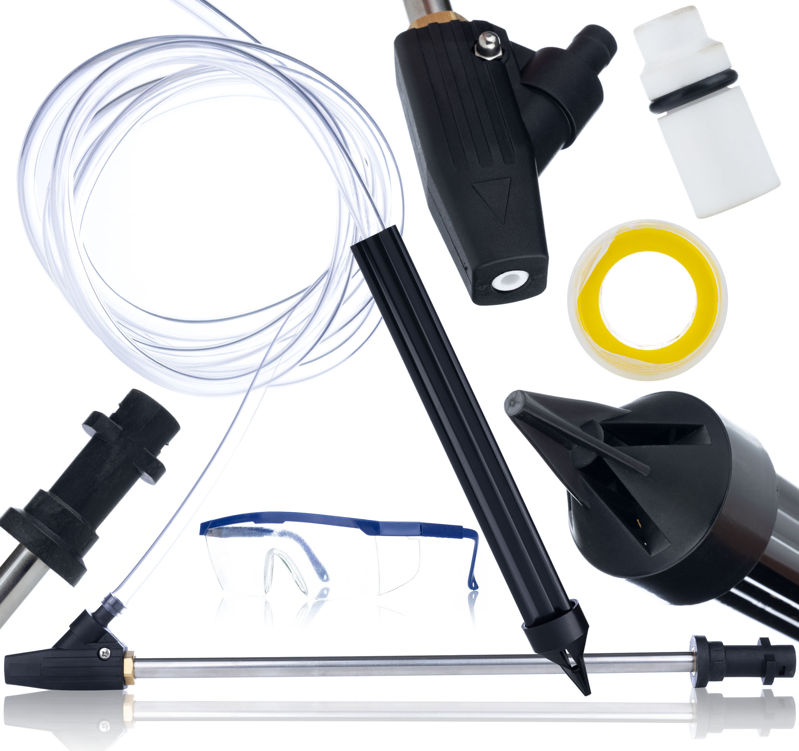 Verwandle deinen Kärcher Hochdruckreiniger in eine Power-Sandstrahlmaschine! Dieses praktische Set mit 8 verschiedenen Düsen entfernt effektiv Rost, alte Farbe und hartnäckige Verschmutzungen von verschiedenen Oberflächen. Die robuste Kunststoffkonstruktion hält auch stärkerer Beanspruchung stand. Kompatibel mit verschiedenen Kärcher-Modellen und anderen Hochdruckreinigern mit passenden Anschlüssen. Einfache Montage - einfach aufstecken und loslegen. Perfekt für Heimwerker, Hausmeister und Profis, die ihre Reinigungskraft maximieren wollen. Mit diesem Set wird dein Hochdruckreiniger zum Allround-Talent!