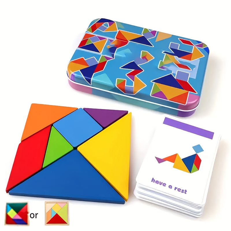Holz Tangram Puzzle Für Kinder Ab 3 Jahre - Geometrische Musterbausteine Lernspielzeug