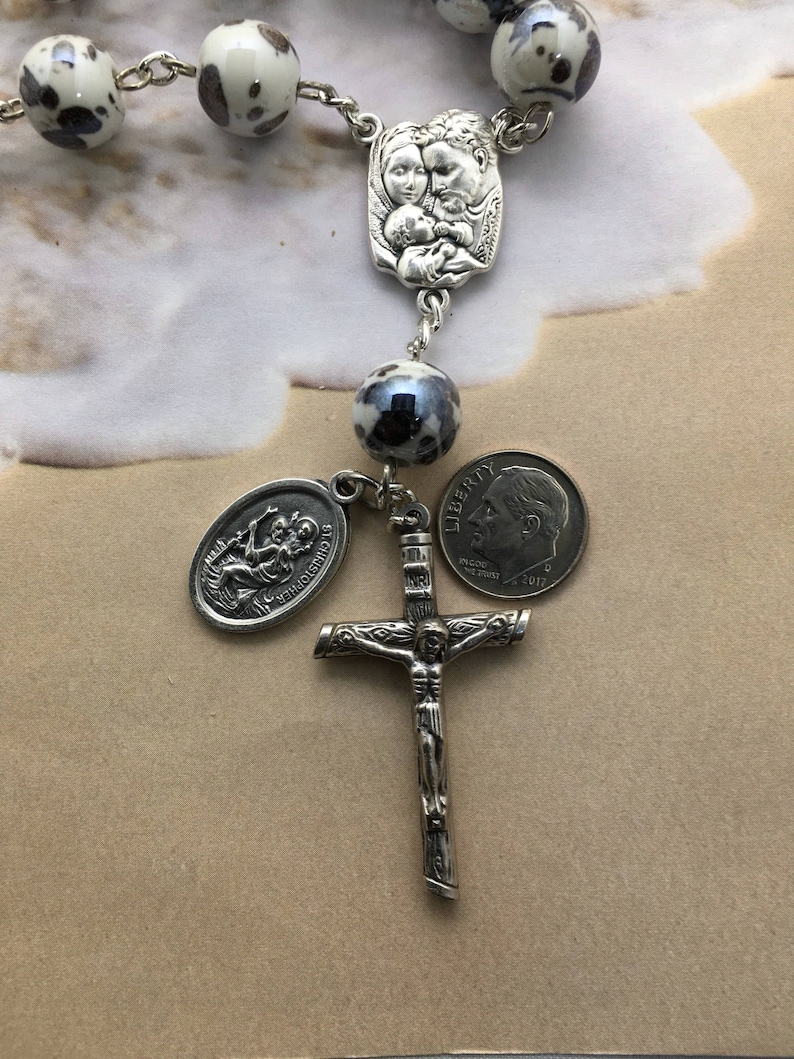 Göttliche Reisebegleitung! Dieser Rosenkranz für den Rückspiegel bringt Segen und Stil in dein Auto. Aus Glas und Legierung, 23cm lang und in verschiedenen Farben erhältlich.\n\nNicht nur schön anzusehen mit den satten Farben und der einzigartigen Textur, sondern auch mit tiefer religiöser Bedeutung. Symbolisiert das Vertrauen und die Verehrung der Jungfrau Maria.\n\nHilft dem Fahrer, Stress zu reduzieren und sorgt für eine friedlichere Atmosphäre im Auto. Und das blinkende Material kann sogar vor Müdigkeit warnen - also auch sicherheitsrelevant!\n\nEinfach am Rückspiegel aufhängen, ohne die Sicht zu beeinträchtigen. Hält sicher und fällt nicht runter. Kann auch als Armband oder für zuhause verwendet werden.\n\nEin durchdachtes Geschenk für katholische Autobesitzer oder einfach für dich selbst. Spiritualität und Style in einem!