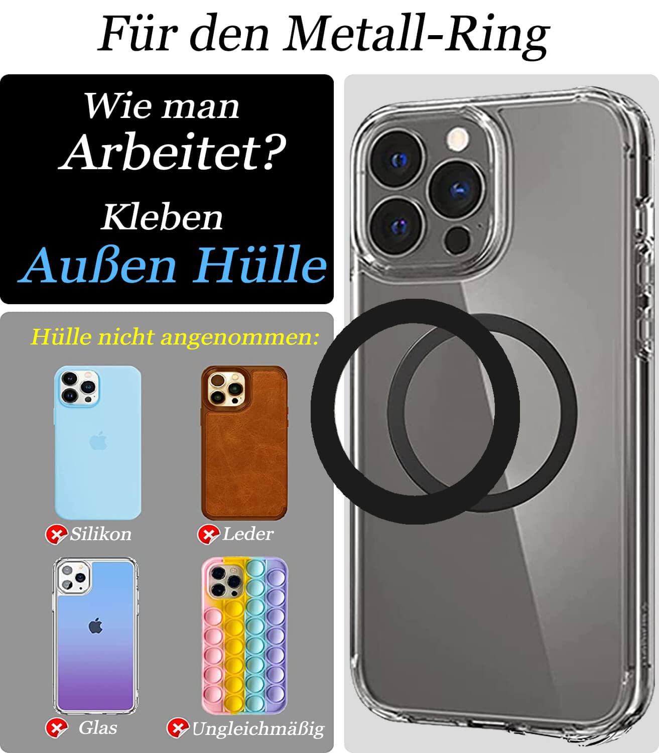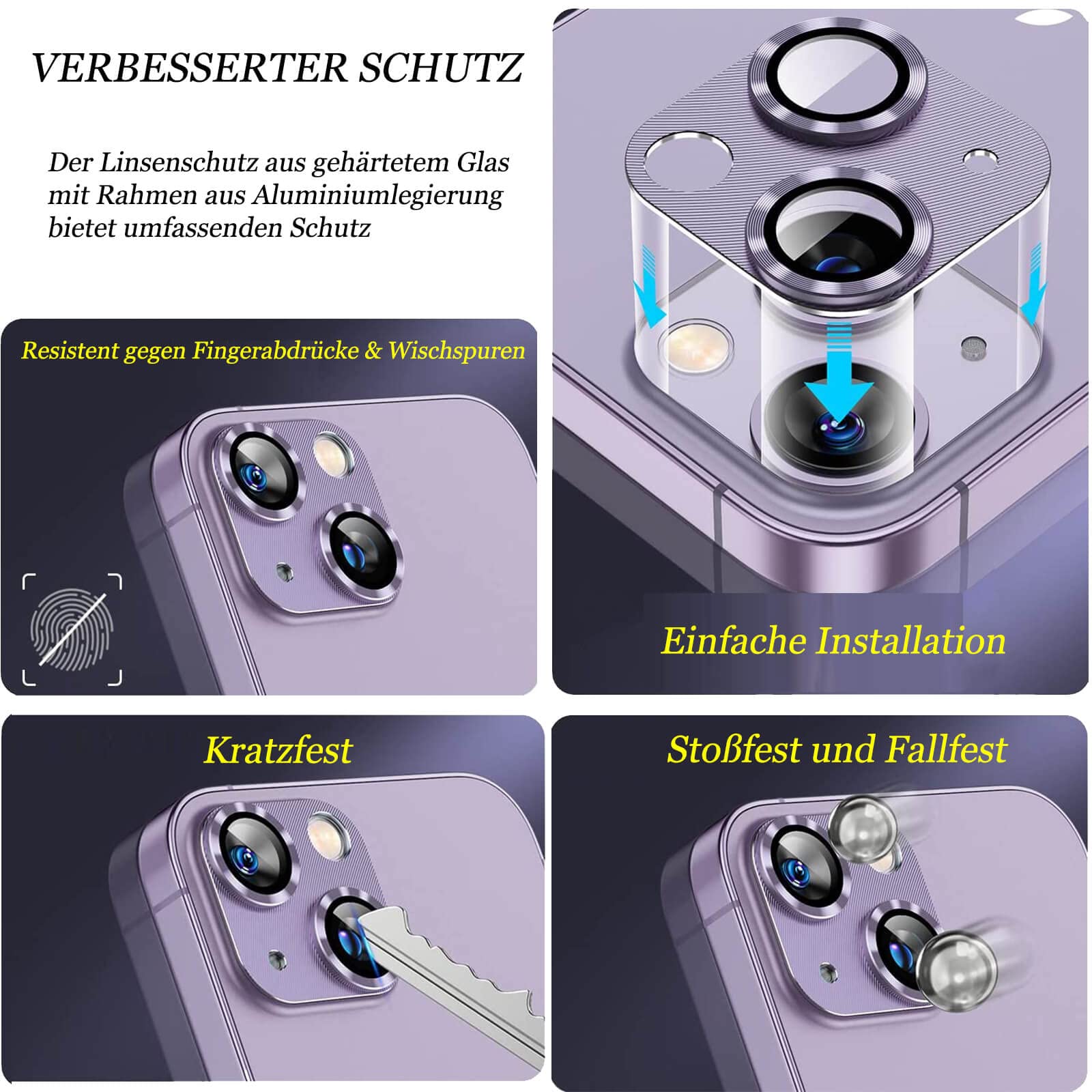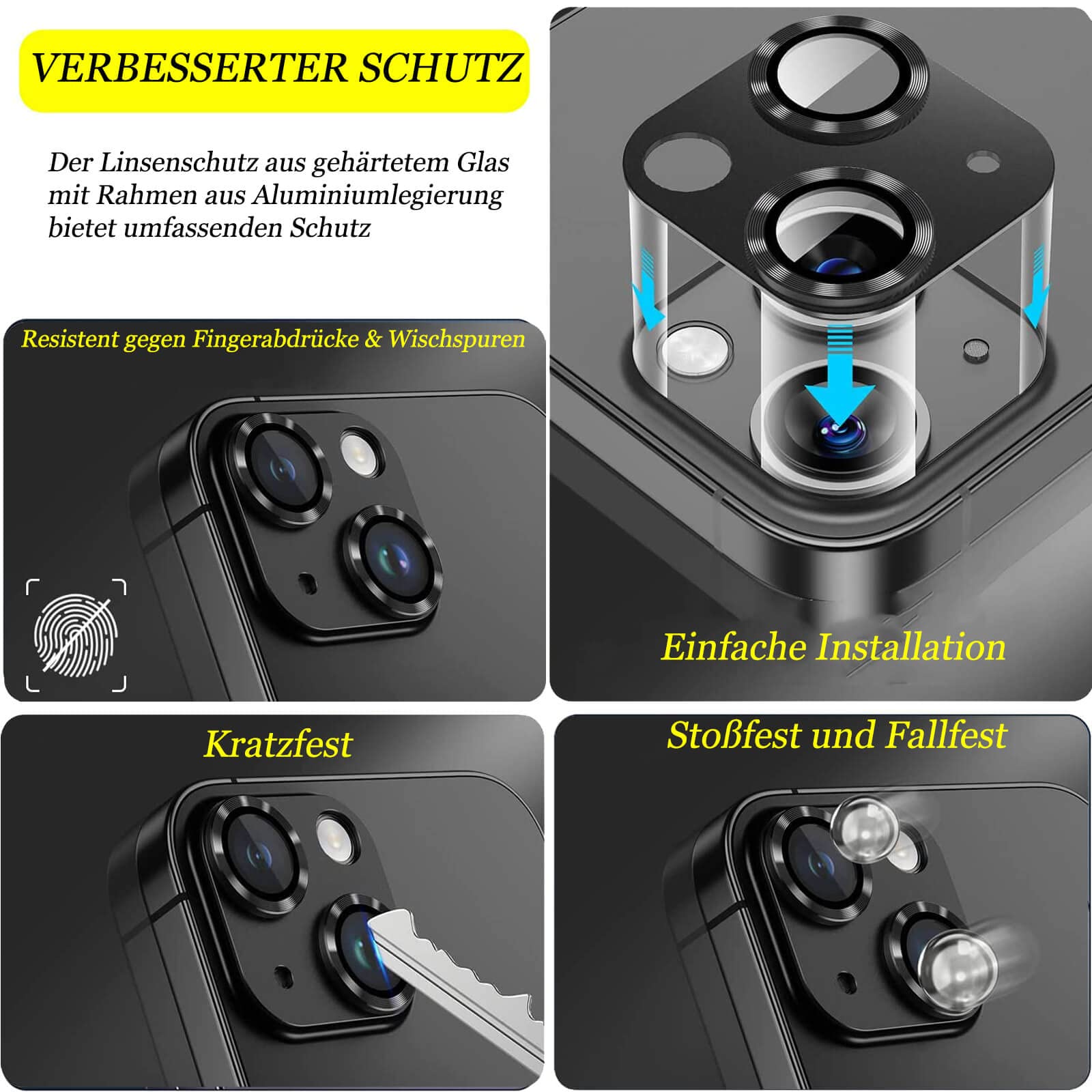 Schütze die Kamera deines iPhone 13 oder 13 mini mit diesen hochwertigen Schutzfolien! Aus 9H-gehärtetem Glas mit perfekter Klarheit - beeinträchtigt weder Bildqualität noch Blitzfunktion. Mit integriertem Metallring für MagSafe-Kompatibilität - ladet normal mit allen MagSafe-Ladegeräten. Einfache blasenfreie Installation mit beiliegendem Werkzeug. Passt perfekt zu originalen Apple-Hüllen. Im Set: 2x Kameraschutz, 1x Metallring, Installationszubehör. Wichtig: Vor dem Kauf iPhone-Modell überprüfen! Für iPhone 13 (6,1 Zoll) und iPhone 13 mini (5,4 Zoll).