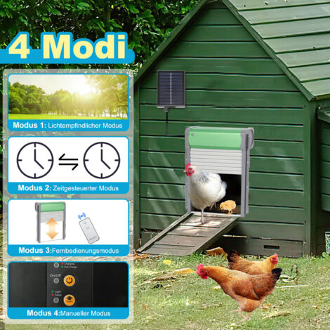 Perfekt für alle Hühnerhalter! Diese Kerbl Automatik-Tür macht das Leben so viel einfacher. Öffnet und schließt sich automatisch mit dem Tageslicht - morgens gehen die Hühner raus, abends sind sie sicher vor Füchsen und Mardern. Mit cleverem Lichtsensor der nicht auf Blitze reagiert. Super Sicherheitsfeature: Stoppt sofort wenn was im Weg ist! Einfach zu installieren mit 1 Meter Kabel für flexible Montage. Läuft mit 4 AA Batterien (nicht dabei). Passt für Türen von 0,5 bis 2,5 kg Gewicht. Maße: 32,5 cm breit, 58 cm hoch wenn offen. Kann auch manuell gesteuert werden mit extra Taster. Deine Hühner sind sicher und du musst nicht mehr früh aufstehen - genial!