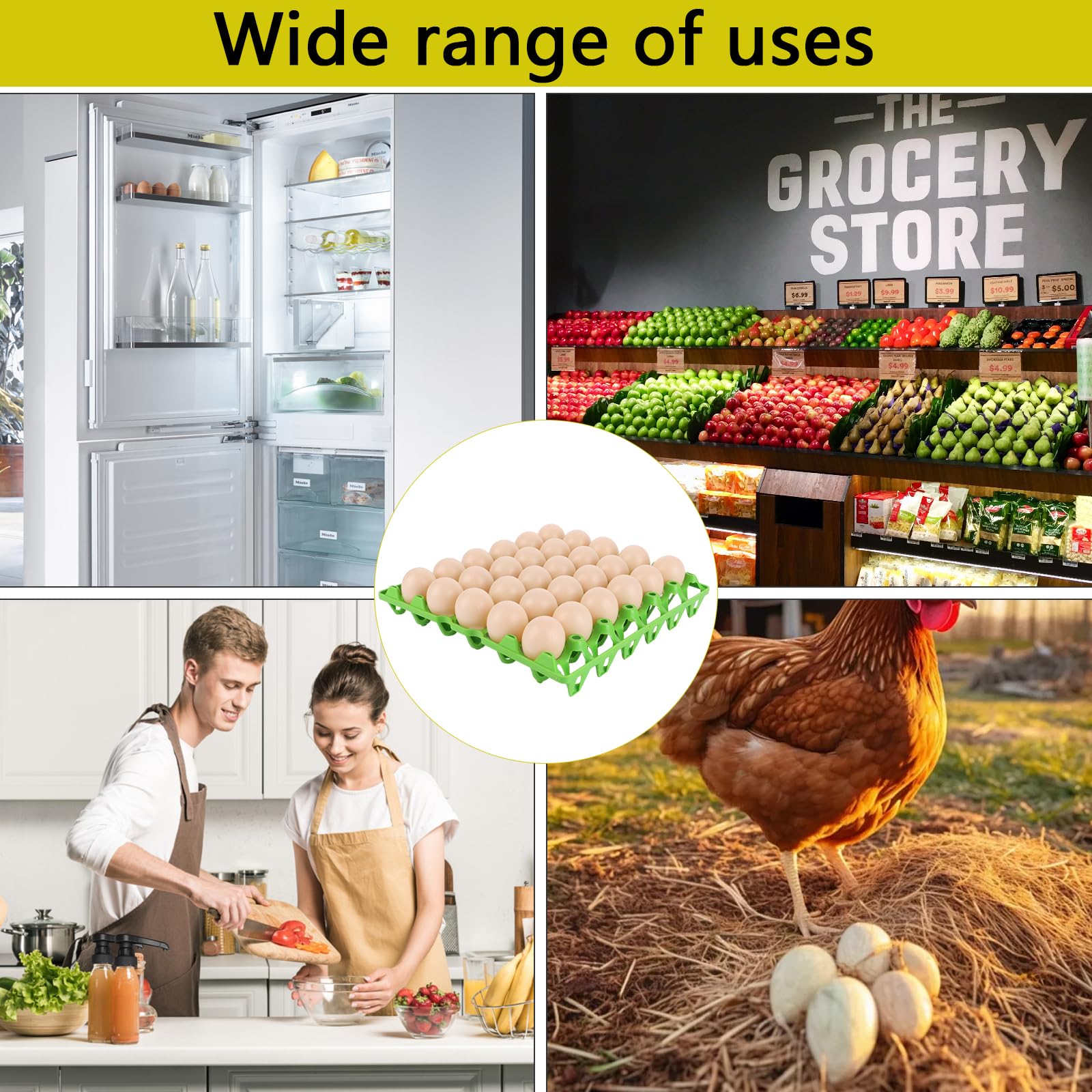 Endlich Ordnung im Kühlschrank! Mit diesen praktischen Eierboxen von ZOFUN hast du immer den perfekten Überblick über deine Eier. Die transparenten Deckel lassen dich sofort erkennen, wie viele Eier noch da sind und ob vielleicht mal eins kaputt gegangen ist. Super praktisch: Die Boxen sind aus robustem Kunststoff und lassen sich platzsparend stapeln. So hast du mehr Platz für andere Lebensmittel. Jede Box bietet Platz für 12 Eier und schützt sie sicher vor Stößen. Die Maße von 295x104x68MM passen in jeden Standardkühlschrank. Besonders cool: Der Deckel bietet genug Platz für deine eigenen Etiketten oder Werbeaufkleber. Und das Beste? Die Eierkartons sind aus recyceltem Material und selbst wieder recyclingfähig. Perfekt nicht nur für Eier - du kannst sie auch zum Vorziehen von Pflanzen, für Blumenzwiebeln oder Bastelprojekte nutzen. Mit 60 Stück im Set bist du bestens ausgestattet, egal ob für den Haushalt, Hofladen oder Café.