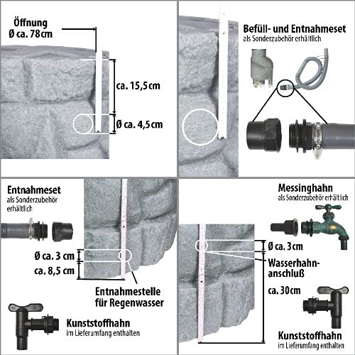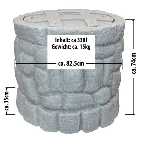 Diese Regentonne ist absolut genial! Sieht aus wie ein echter Märchenbrunnen, ist aber ein superpraktischer Regenspeicher mit 330 Litern Fassungsvermögen. Und das Beste: Sie ist komplett frostsicher bis -20°C - auch wenn sie voll ist! Maße: 74cm Höhe, 82,5cm Durchmesser, ca. 15kg Gewicht. Hergestellt in besonderer Rotationssinter-Technik - das ist Qualität, die wirklich hält. Nicht so ein Billigteil, das nach zwei Jahren kaputt geht. Mit stabilem Deckel (perfekt für eine Schwengelpumpe) und Wasserhahn inklusive. Die sand-stein Optik sieht total natürlich aus und passt in jeden Garten. Ob als Regentonne, Gartendeko oder für den Teichfilter - dieses Teil macht einfach alles mit. Einmal installiert, hast du Jahre lang Freude daran. Ja, sie kostet etwas mehr - aber sie ist es absolut wert! Investiere in Qualität und hab lange was davon.