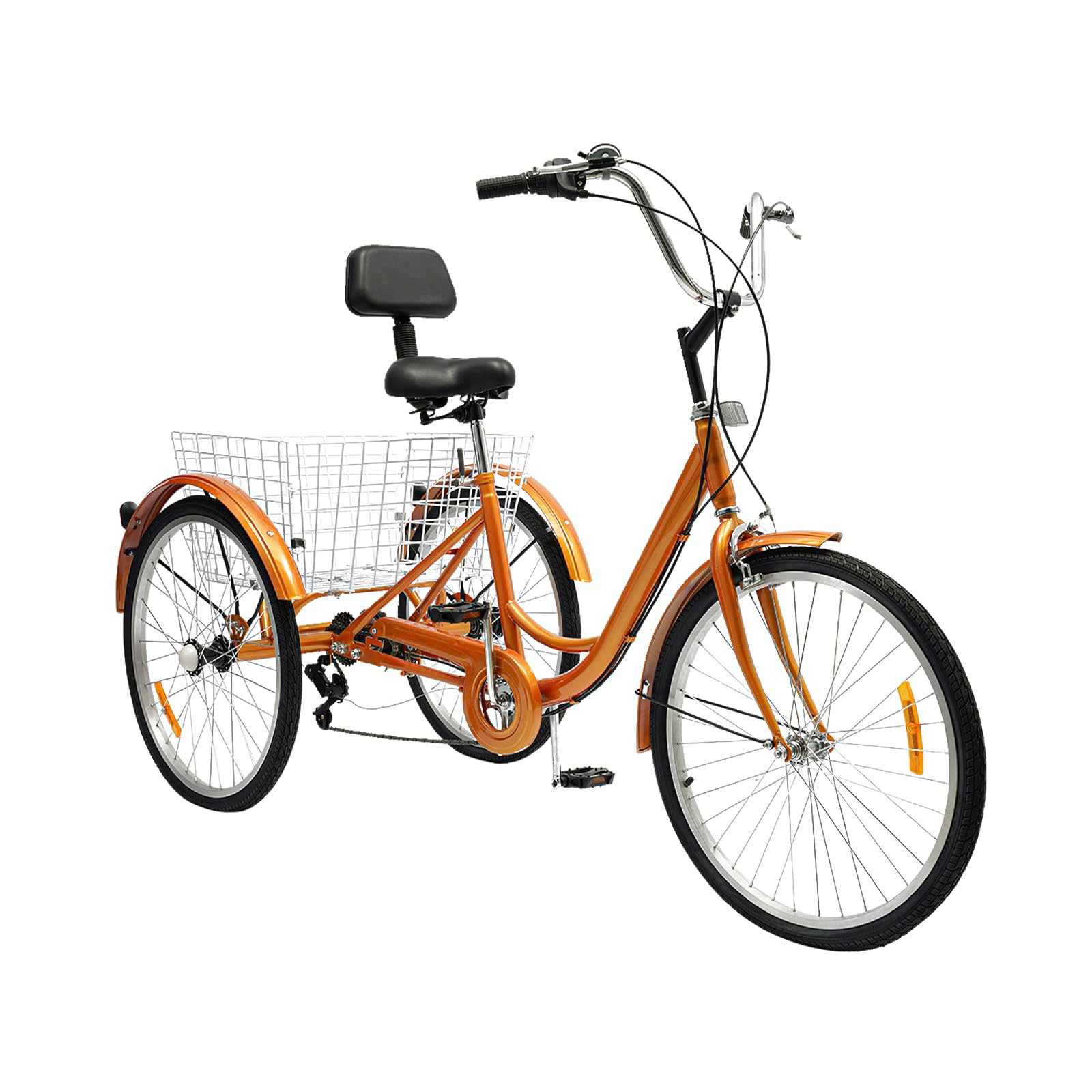 Sicher und stabil unterwegs mit diesem coolen Dreirad für Erwachsene! Mit 6 Gängen meisterst du jede Steigung und der große Korb hinten bietet reichlich Stauraum für Einkäufe. Verstellbarer Sitz (80-90cm) und Lenker für perfekten Komfort. Doppelbremssystem für maximale Sicherheit, Reflektoren für bessere Sichtbarkeit. Aus robustem Aluminiumrahmen, trägt bis zu 95kg. Einfach zusammenzubauen, inklusive Montagematerial. Perfekt für Senioren, Menschen mit Gleichgewichtsproblemen oder einfach für entspannte Ausflüge. Farbe: Gelb mit weißem Korb. Macht Fahrradfahren wieder zum puren Vergnügen!