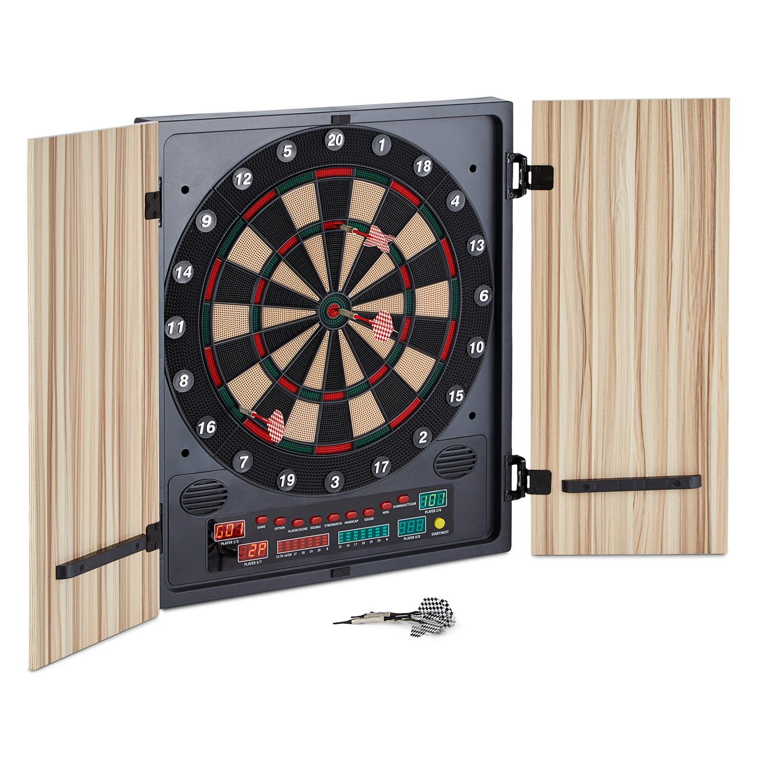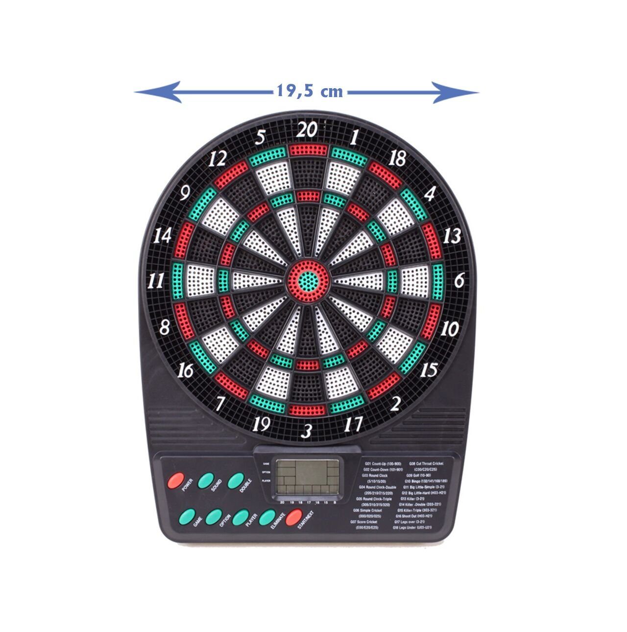 Dart-Spaß für die ganze Familie! Diese elektronische Dartscheibe von Wiefiche bringt Pub-Feeling nach Hause. Mit 27 verschiedenen Spielkategorien und sage und schreibe 243 Unterkategorien ist für jeden Geschmack etwas dabei - ob Anfänger oder Profi. Bis zu 16 Spieler können gleichzeitig mitspielen, perfekt für Partys oder gesellige Abende. Das große 4-LED-Display mit hoher Helligkeit zeigt alles Wichtige an, und die Sprachansagefunktion (Englisch) macht das Spiel noch unterhaltsamer. Die Dartscheibe hat klappbare Türen und misst ausgeklappt 102x62 cm - platzsparend verstaut ist sie nur 50x69 cm groß. Im Lieferumfang findest du alles, was du brauchst: 12 Pfeile, 88 Dartköpfe, Netzadapter und englische Anleitung. Einfach an die Wand montieren, Strom anschließen und los geht's! Drücke 'Power' zum Starten, 'Game' zur Spielauswahl und 'Player' für die Spieleranzahl. Dartspielen trainiert übrigens die Konzentration und Armstärke - Spaß und Fitness in einem! Perfekt für Büros, Partyräume, Kneipen, Garagen oder den eigenen Garten.