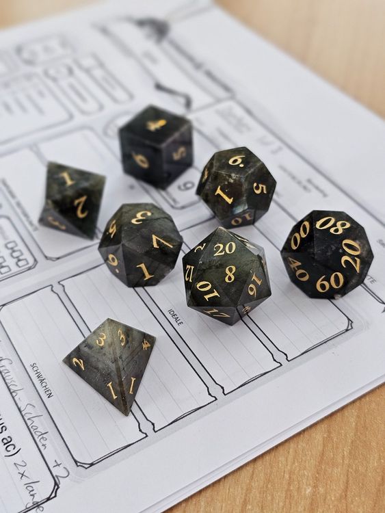 Perfektes Würfel-Set für Rollenspiel-Fans! Enthält 7 bunte Acryl-Würfel: 1xD20, 1xD12, 2xD10 (00-90 und 0-9), 1xD8, 1xD6, 1xD4. Hochwertig verarbeitet mit klaren Zahlen - auch 6 und 9 sind gut unterscheidbar. Mit coolem Fenster-Design in rot-schwarz. Ideal für Dungeons & Dragons, Pathfinder, Warhammer und andere RPGs. Macht richtig Spaß beim Spielen mit Freunden und Familie!
