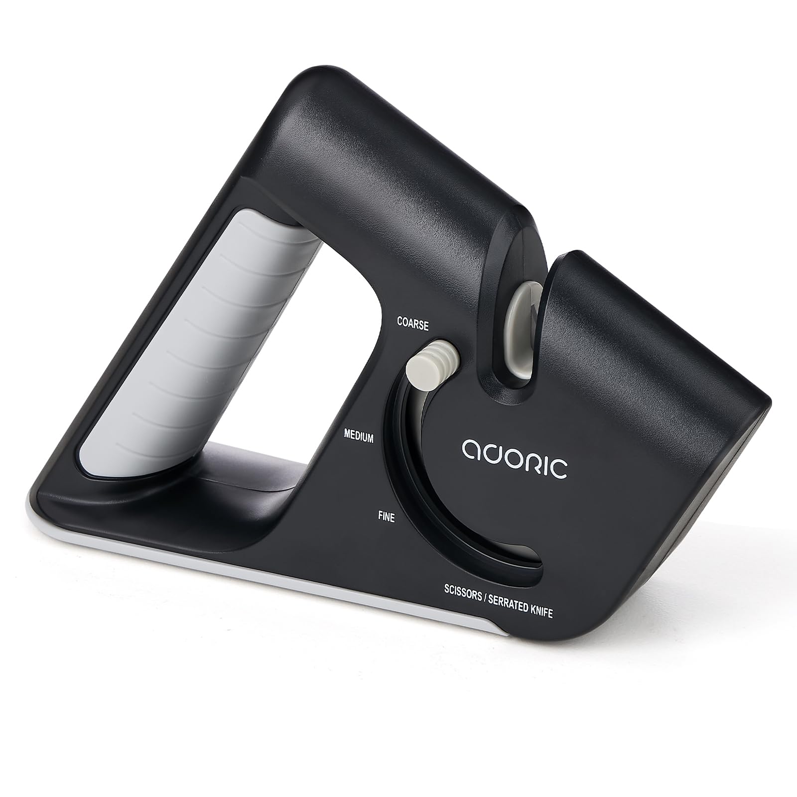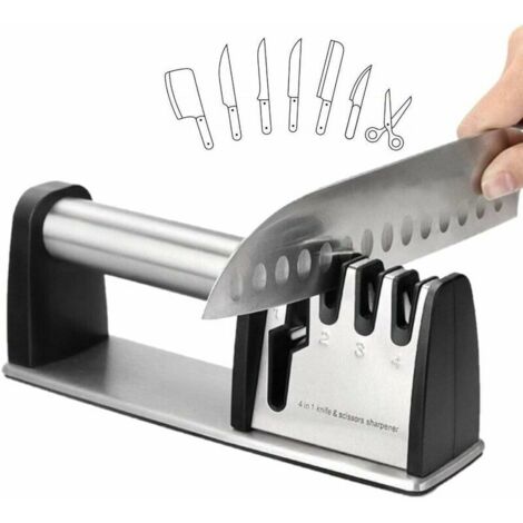 Stumpfe Messer? Nicht mit diesem Profi-Schärfer! Das 4-IN-1 System bietet Grobschliff, Feinschliff und Politur in einem Gerät. Mit Wolframcarbid, Diamant und Keramik für perfekte Ergebnisse bei allen Messertypen - inklusive Brotmesser und Scheren! Der verstellbare Schleifwinkel passt sich jedem Messer perfekt an. Einfache Handhabung: Winkel einstellen, leicht drücken und das Messer sanft von Basis zu Spitze ziehen. Die rutschfeste Basis gibt sicheren Halt während des Schärfens. Viel einfacher und sicherer als traditionelle Wetzstähle! Ob für deine Küchenmesser, Jagdmesser oder Scheren - dieser Schärfer macht sie alle wieder rasiermesserscharf. Professionelle Ergebnisse für zu Hause - deine Messer werden es dir danken! Mit dem inkludierten Service-Support bist du auf der sicheren Seite.