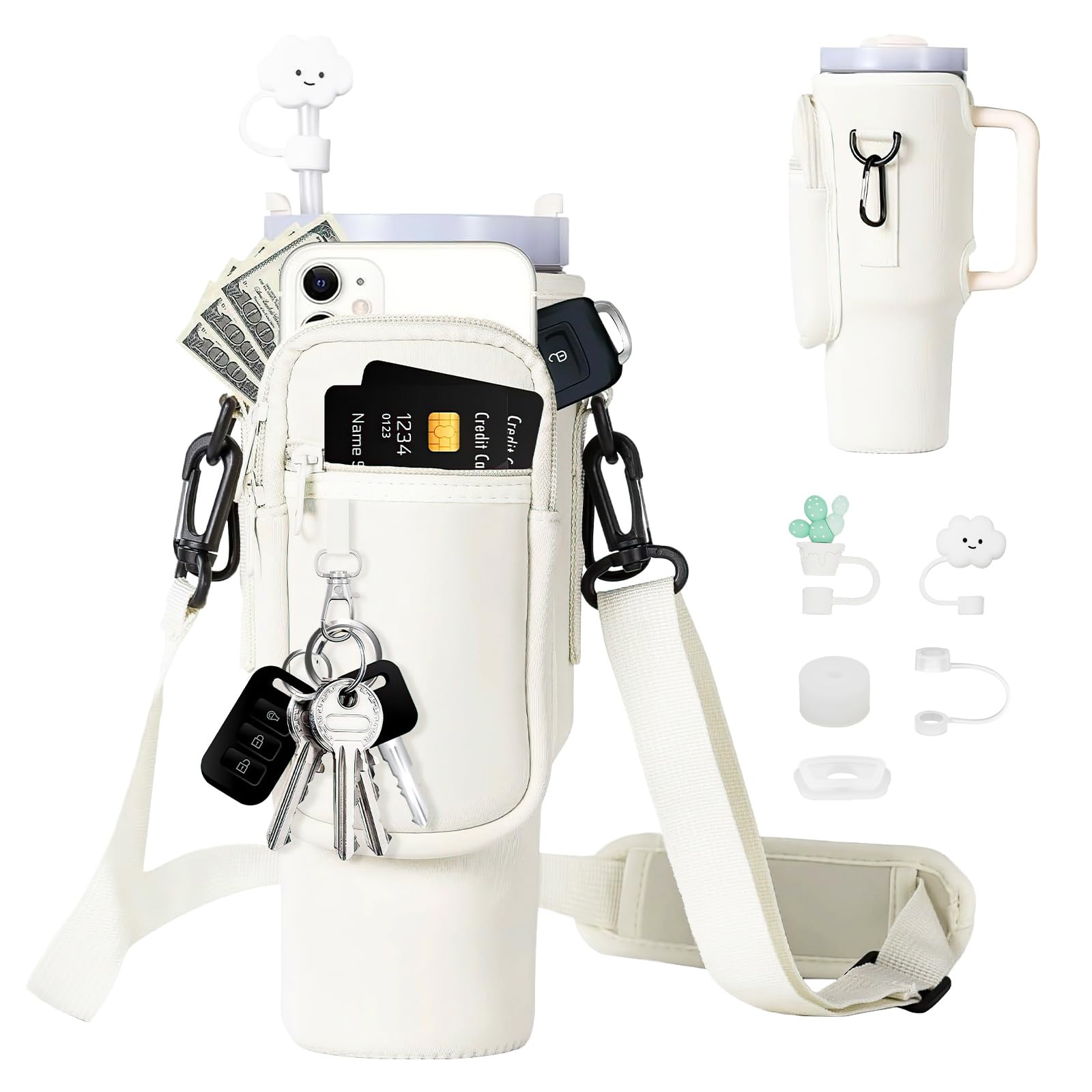 Dein Stanley Cup 40oz ist dir zu schwer zum Tragen? Diese coole Tragetasche löst das Problem! Speziell für den 40-Unzen-Becher maßgeschneidert, sitzt er wie eine zweite Haut und verhindert lästiges Wackeln und Verrutschen. Egal ob du pendelst, wanderst, läufst oder radfährst - der Becher bleibt stabil und deine Hände sind frei. Die Tasche hat praktische Fächer für dein Handy (ergonomisch für einhändigen Zugriff), ein Reißverschlussfach für Kleinkram und einen Schlüsselring für sichere Aufbewahrung. Hergestellt aus hochwertigem Gummi ist sie wasserdicht, stoßfest und geräuschdämpfend. Der abnehmbare, verstellbare Schultergurt bietet flexible Trageoptionen - diagonal, über der Schulter oder als Griff. In verschiedenen Trendfarben erhältlich, ist diese Tasche nicht nur super praktisch, sondern auch ein stylisches Accessoire. Das perfekte Geschenk für alle Stanley-Fans, die ihren Becher überall mitnehmen wollen!