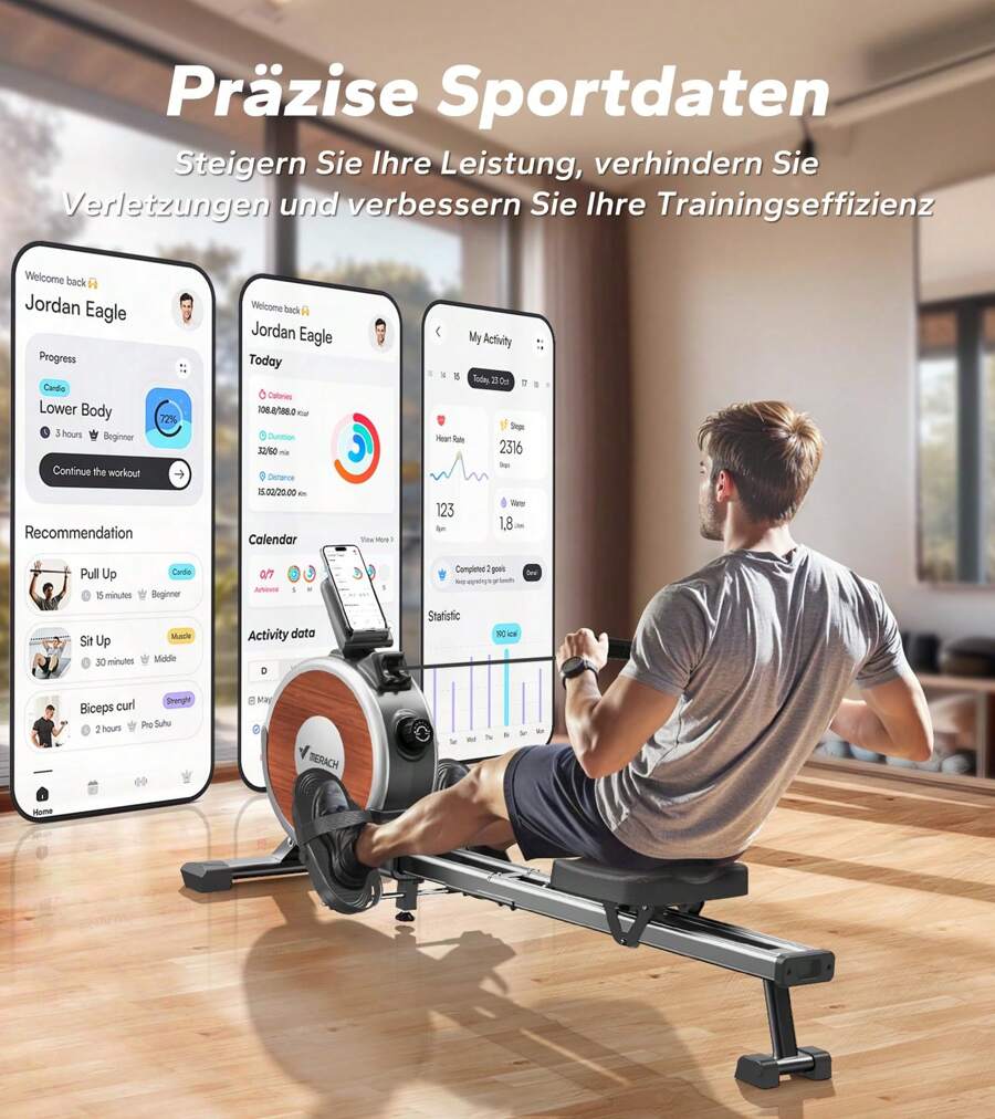 Effizientes Training für zuhause! Dieses Rudergerät mit innovativem Wasserwiderstand trainiert über 85% deiner Muskeln. 20 Minuten Rudern entsprechen 60 Minuten Joggen - perfekt für Fettverbrennung und Ausdauer.