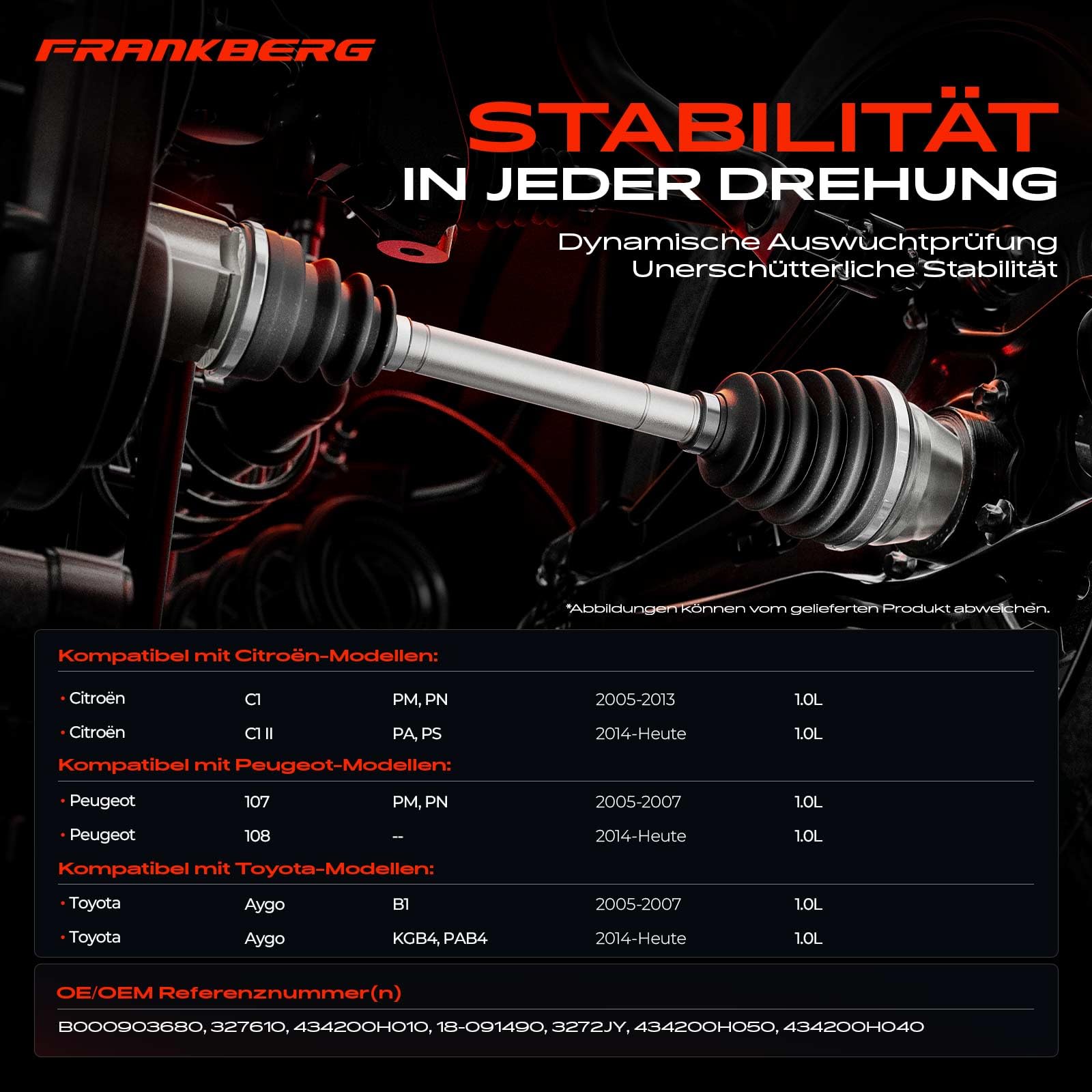 Wenn deine Antriebswelle Spiel hat oder knackt, ist dieser Gelenksatz die perfekte Lösung! Er passt für viele Modelle: Toyota Aygo B1/B4, Peugeot 107, Citroën C1 und Yaris P13 mit 1.0L oder 1.4L Motor. Die Maße stimmen: 138mm Länge, 20/24 Verzahnungen, 49.5mm Dichtring. Bevor du bestellst, unbedingt die Kompatibilität prüfen - entweder mit dem Amazon Fit-Tool oder durch Vergleich der Teilenummern wie 434100H020B, 434200H020B etc. Die Qualität ist top, getestet und entspricht den OEM-Anforderungen. Einbau ist relativ einfach für erfahrene Schrauber. So bekommst du dein Fahrzeug wieder fit für die Straße!