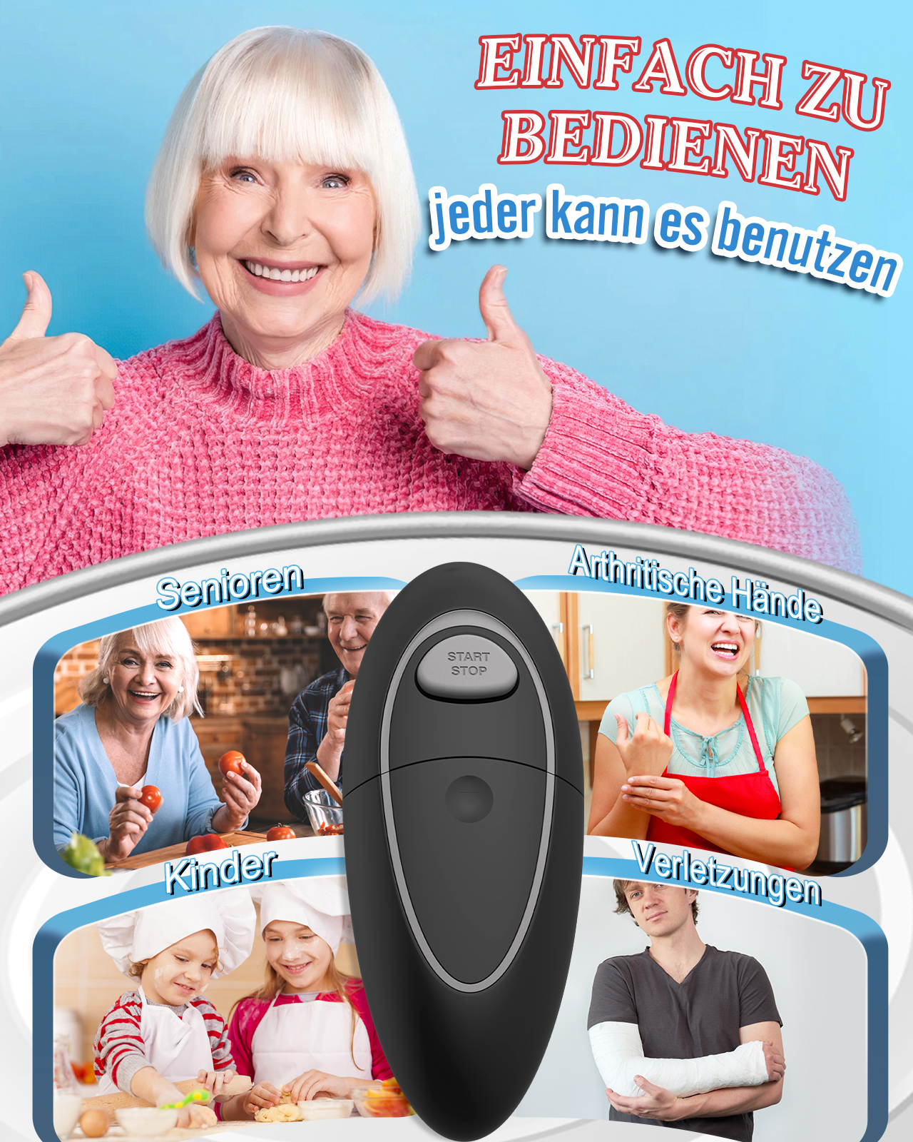 Elektrischer Dosenöffner - Für Runde & Eckige Dosen, Sicher Ohne Scharfe Kanten