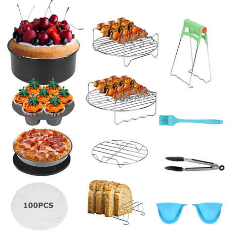 Mach mehr aus deiner Heißluftfritteuse! Dieses 3-teilige Zubehör-Set von Hklshyd erweitert die Möglichkeiten deines Geräts enorm. Aus silberfarbenem Edelstahl, robust und langlebig. Das spezielle Gitterdesign ermöglicht maximale Luftzirkulation - so wird alles schön knusprig und gleichmäßig gegart. Perfekt zum Dörren von Obst, Gemüse oder Fleisch - die schmalen Gitter verhindern, dass empfindliche Stücke durchhängen. Passt für 6QT Modelle, Aria und andere gängige Heißluftfritteusen. Spülmaschinengeeignet - einfach reinigen, kein lästiges Schrubben. Ob Pommes, Hähnchen oder getrocknete Apfelringe - mit diesen Einsätzen wird deine Fritteuse zum Multitalent. Mehr Kapazität, bessere Ergebnisse - was will man mehr?