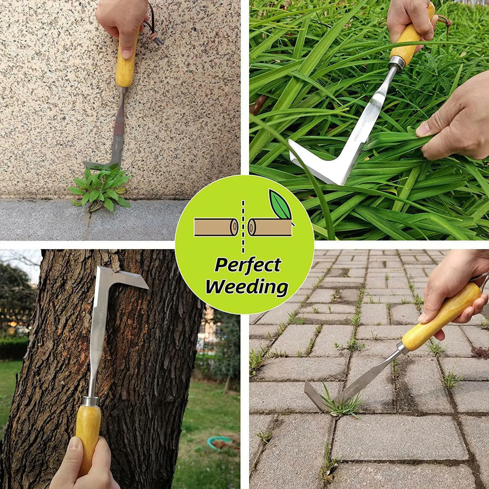 Material: Hochwertiger Edelstahl • Maße: 33 x 7 cm • Besonderheiten: Ergonomischer Griff, verdickte Klinge • Ideal für: Terrassenfugen, Pflastersteine, Gehwege • Auch für Moosentfernung geeignet • Inklusive: 1x Unkrautwerkzeug