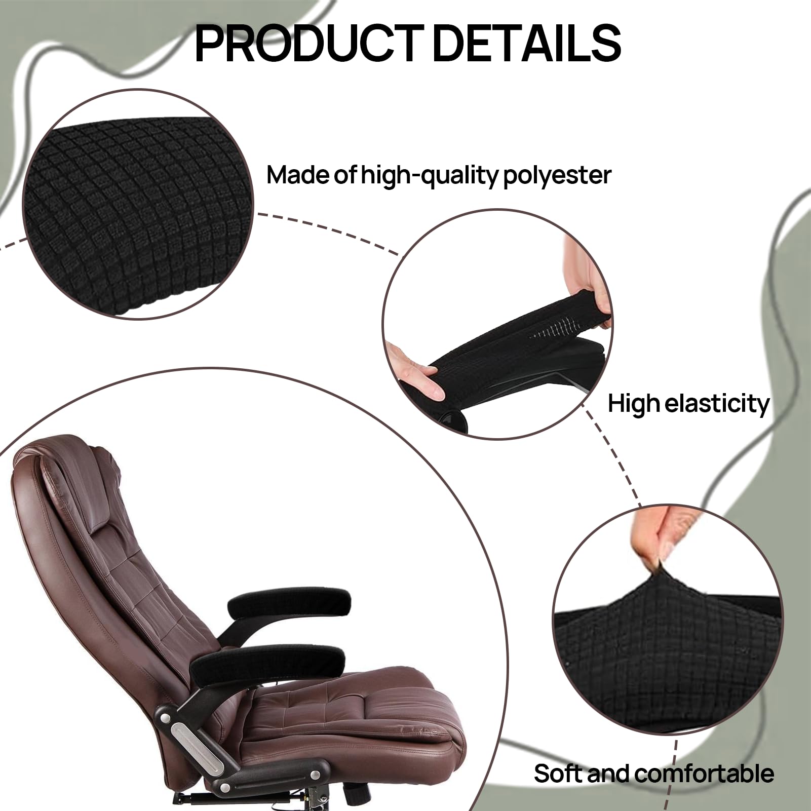 Machen wir deine Bürostuhl-Armlehnen wieder bequem und schön! Diese 2 Armlehnenbezüge aus weichem, dehnbarem Polyester geben deinem Stuhl neuen Komfort und Schutz. Mit den Maßen 27 x 6,5 cm und hoher Elastizität passen sie auf die meisten Armlehnen - ob Bürostuhl, Gaming-Stuhl oder Schreibtischstuhl. Einfach über die Armlehnen ziehen, schon sind sie vor Staub, Abnutzung und Schweiß geschützt. Die hautfreundliche Textur fühlt sich angenehm an und die Bezüge bieten einen extra weichen Ellenbogenschutz. Perfekt wenn deine alten Armlehnen schon abgenutzt sind oder du einfach mehr Komfort willst. Die Pflege ist super einfach: Waschbar in der Maschine oder von Hand. Neben dem praktischen Nutzen sehen die schwarzen Bezüge auch noch stylisch aus und geben deinem Arbeits- oder Gaming-Bereich ein aufgewertetes Look. Mess vor dem Kauf am besten deine Armlehnen, dann passt es garantiert. Ein kleines Upgrade mit großer Wirkung für deinen Sitzkomfort!