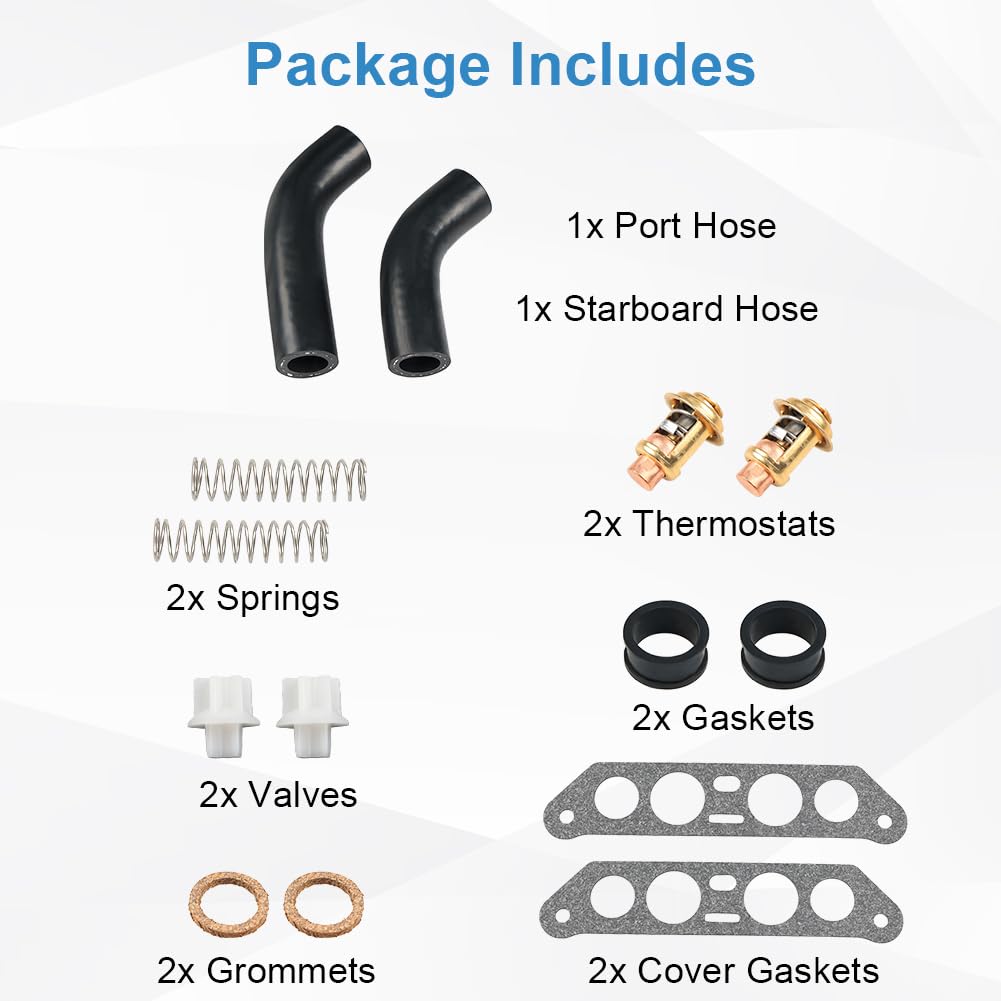 Dieses komplette Thermostat-Kit ist genau das Richtige für deinen Johnson oder Evinrude V4 Crossflow Motor! Passt für Modelle von 65-140 PS, Baujahre 1978-1995. Enthält alles was du brauchst: 2 Thermostate, Dichtungen, Ventile, Tüllen, Federn und Schläuche. Ersetzt originale Teilenummern wie 18-3673, 340975, 340976 und andere. Einfach einzubauen und sofort einsatzbereit. Perfekt für 65 & 80 Jet (1994-1995), 90 Jet (1994), 85 PS (1978-1980, 1993-1995) und viele weitere Modelle. Mach deinen Außenborder wieder flott mit diesem hochwertigen Ersatzteil-Set. Ob für Profi-Werkstätten oder Hobby-Schrauber - hier bekommst du Qualität zum fairen Preis. Dein Boot wird's dir danken!