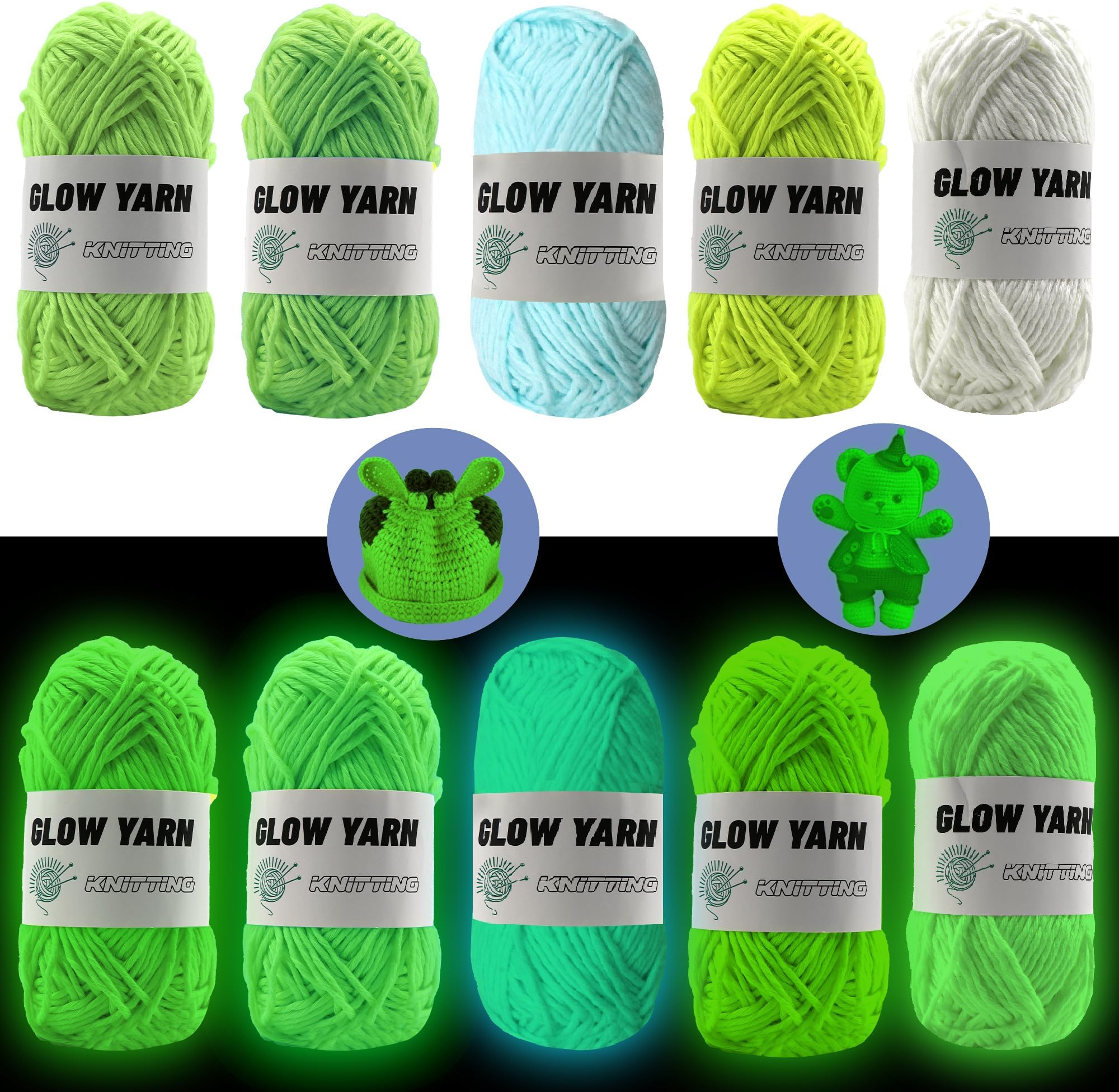Das Garn absorbiert Tageslicht und gibt es später im Dunkeln wieder ab. Super für: