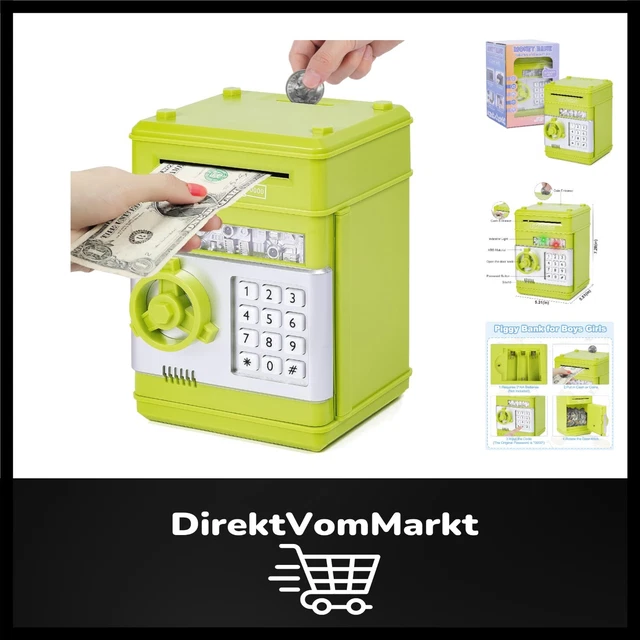 Wie cool ist das denn - eine eigene Bank für Kinder! Diese elektronische Spardose sieht aus wie ein richtiger Geldautomat und macht Sparen zum Spaß. Mit 4-stelligem Code (Standard 0000) - nur wer den Code kennt, kommt an das Geld ran. Münzen wirfst du einfach oben rein, Geldscheine werden automatisch eingezogen. Platz für bis zu 600 Münzen oder 100 Scheine - da kann richtig was zusammenkommen! Wenn Geld eingeworfen wird, spielt die Spardose sogar Musik - wie im echten Leben! Perfekt für Kinder von 3-12 Jahren, um den Umgang mit Geld zu lernen. Aus robustem ABS-Kunststoff, ungiftig und sicher. Benötigt 3 AA-Batterien (nicht im Lieferumfang). Ein super Geschenk für Geburtstage, Weihnachten oder einfach so - damit lernen Kinder spielerisch das Sparen. Die Augen werden leuchten, wenn sie ihre eigene kleine Bank haben!