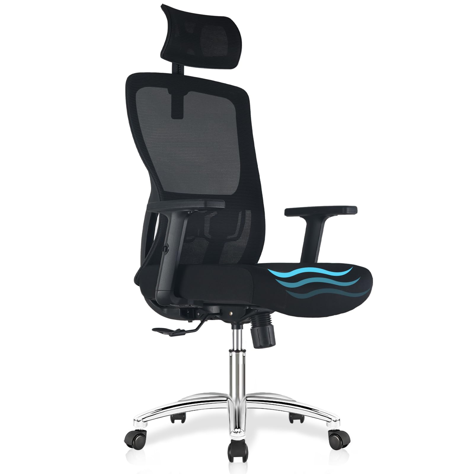 Achtung, Büro-Helden! Dieser ergonomische Bürostuhl von Topiake macht langes Sitzen endlich erträglich. Die S-förmige Rückenlehne schmiegt sich perfekt an deinen Rücken an und die verstellbare Lendenstütze (bis 6 cm) gibt dir genau die Unterstützung, die du brauchst. Die Armlehnen klappst du einfach hoch, wenn du näher an den Tisch musst. Von 90° bis 125° Neigung ist alles möglich - perfekt für konzentriertes Arbeiten oder entspanntes Zurücklehnen. Das atmungsaktive Netzgewebe sorgt dafür, dass du nicht ins Schwitzen kommst. Die Gasdruckfeder ist TÜV-geprüft und hält bis 150 kg aus. Die Rollen schonen deinen Boden und drehen sich super leise. Montage dauert nur 10 Minuten - dann kannst du sofort durchstarten! Für Homeoffice, Gaming oder Studium - dieser Stuhl hat einfach alles.