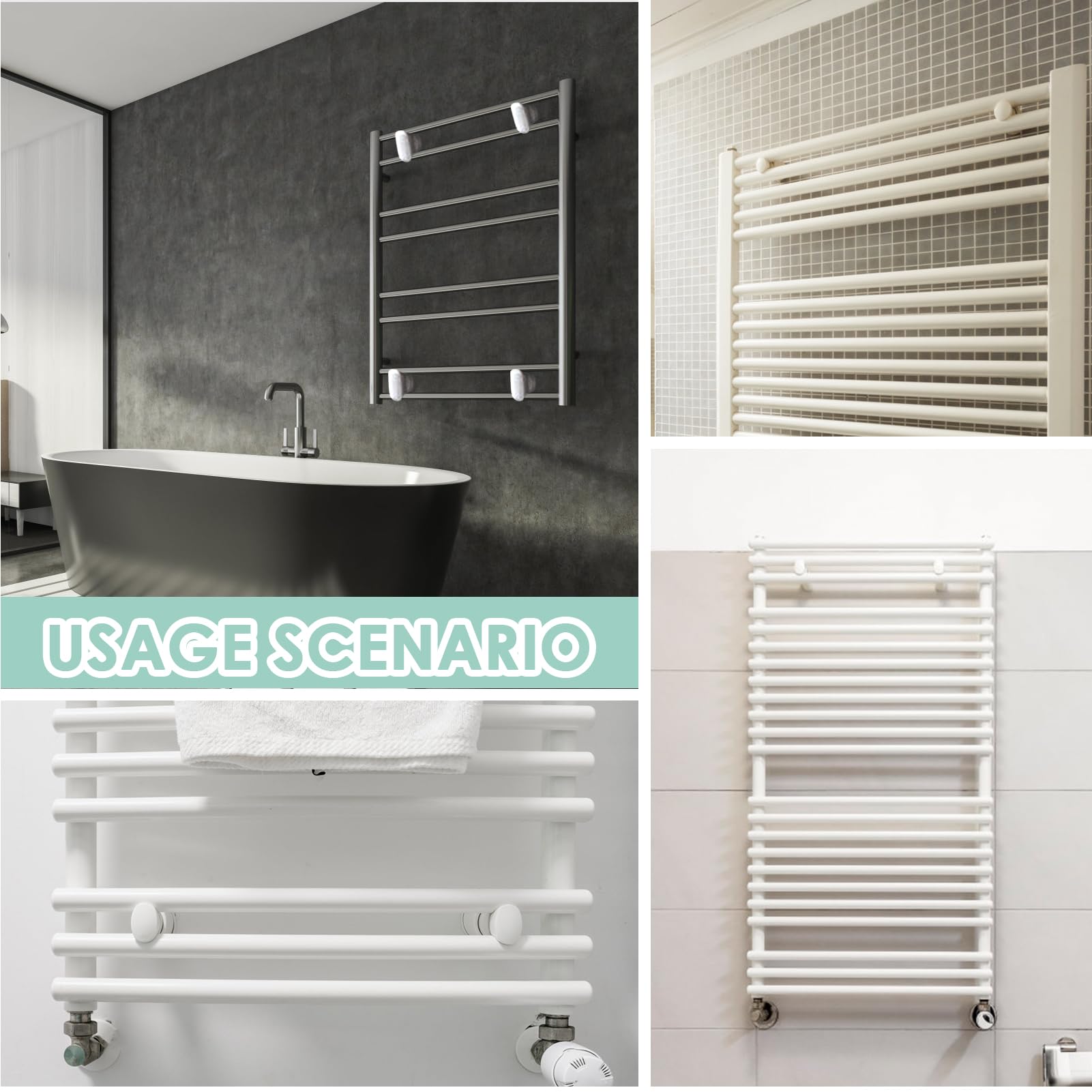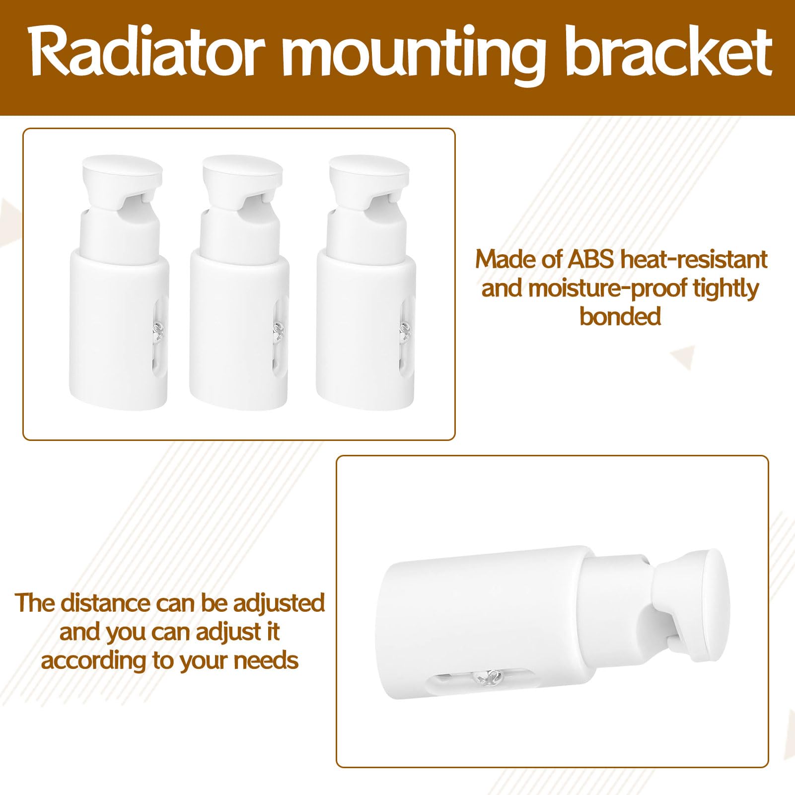 Endlich Ordnung im Bad! Diese 3 Halterungen von Rebanky halten deinen Handtuchheizkörper sicher an der Wand. Aus robustem ABS-Kunststoff in Weiß, hitze- und feuchtigkeitsbeständig. Super praktisch: Sie sind höhenverstellbar von 7,5-9,5 cm und passen für gerade oder gebogene Heizkörperrohre. Im Lieferumfang ist alles dabei, was du zur Montage brauchst - Haken, Spreizschrauben, Schnallenkappen und Dichtungen. Einfach an der Wand befestigen, Höhe einstellen und den Heizkörper einklemmen. Spart Platz und sieht ordentlich aus. Perfekt für jedes Familienbad - so wird dein Heizkörper zum stylischen Handtuchhalter!