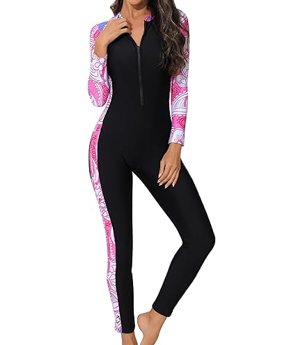 Vollständiger Sonnenschutz für alle Wasseraktivitäten! Dieser Ganzkörper-Badeanzug schützt dich mit UPF 50+ vor schädlichen UV-Strahlen - ideal für lange Tage am Strand oder im Wasser. Aus 92% Polyester und 8% Elasthan ist er super atmungsaktiv, trocknet schnell und hält auch bei intensiver Nutzung ewig. Der Reißverschluss vorne oder hinten macht das An- und Ausziehen zum Kinderspiel. Die langen Ärmel und Beine bedecken deinen ganzen Körper, während die modischen Blumen- und Colorblock-Drucke für stylisches Aussehen sorgen. Perfekt zum Surfen, Schnorcheln, Kajakfahren oder einfach nur fürs Schwimmen. Der Stoff schützt zusätzlich vor Hautausschlägen und Abschürfungen - besonders praktisch beim Surfen oder anderen Wassersportarten. Wähle einfach deine Größe nach der Größentabelle und genieße sorgenfreien Wasserspaß!
