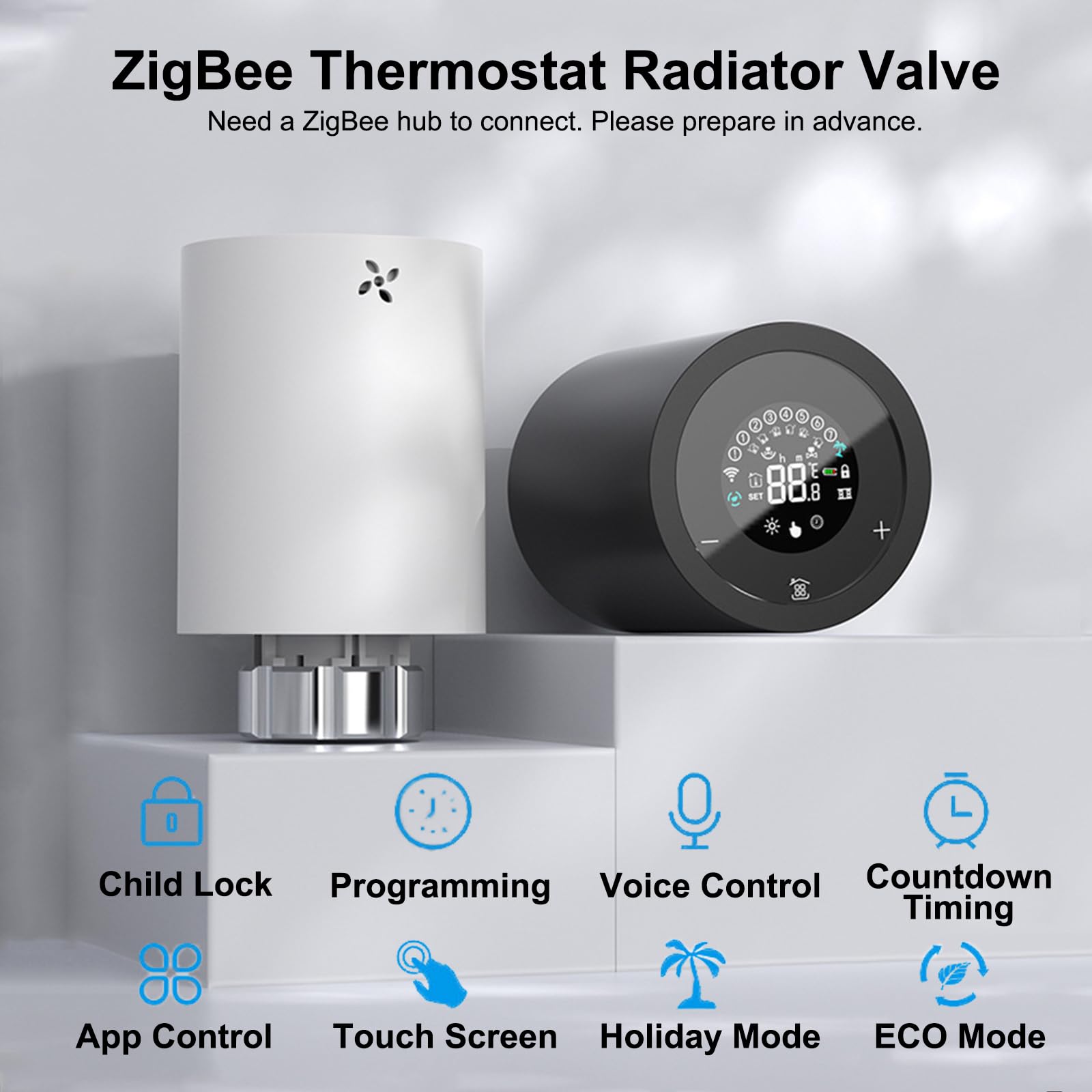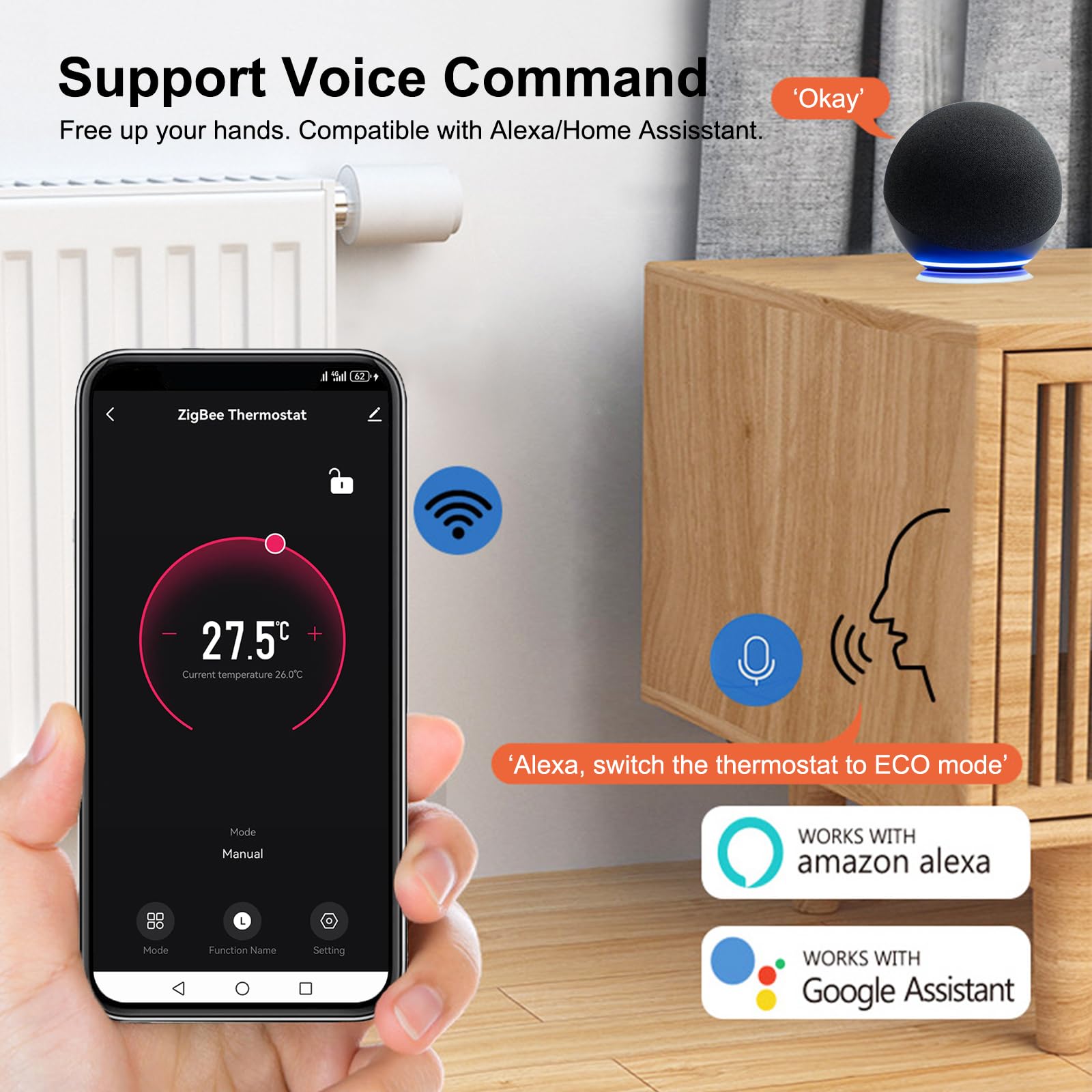 Stell dir vor, du steuerst deine Heizung einfach vom Sofa aus - mit diesem smarten Thermostat wird's wahr! Das Teil connectet per WLAN mit der Tuya oder Smart Life App, und schon regelst du die Temperatur in jedem Raum einzeln. Noch cooler: Es versteht Sprachbefehle von Alexa und Google Home! Du kannst wochenweise programmieren - ob 5+2, 6+1 oder 7 Tage, mit bis zu 6 Zeitabschnitten pro Tag. So heizt es nur, wenn du wirklich da bist und sparst dabei Energie. Die Kindersicherung verhindert, dass die Kleinen was verstellen. Mit 88x54mm ist es kompakt, läuft mit 3 AA-Batterien und braucht keinen extra Hub. Einfach montieren und smart heizen!