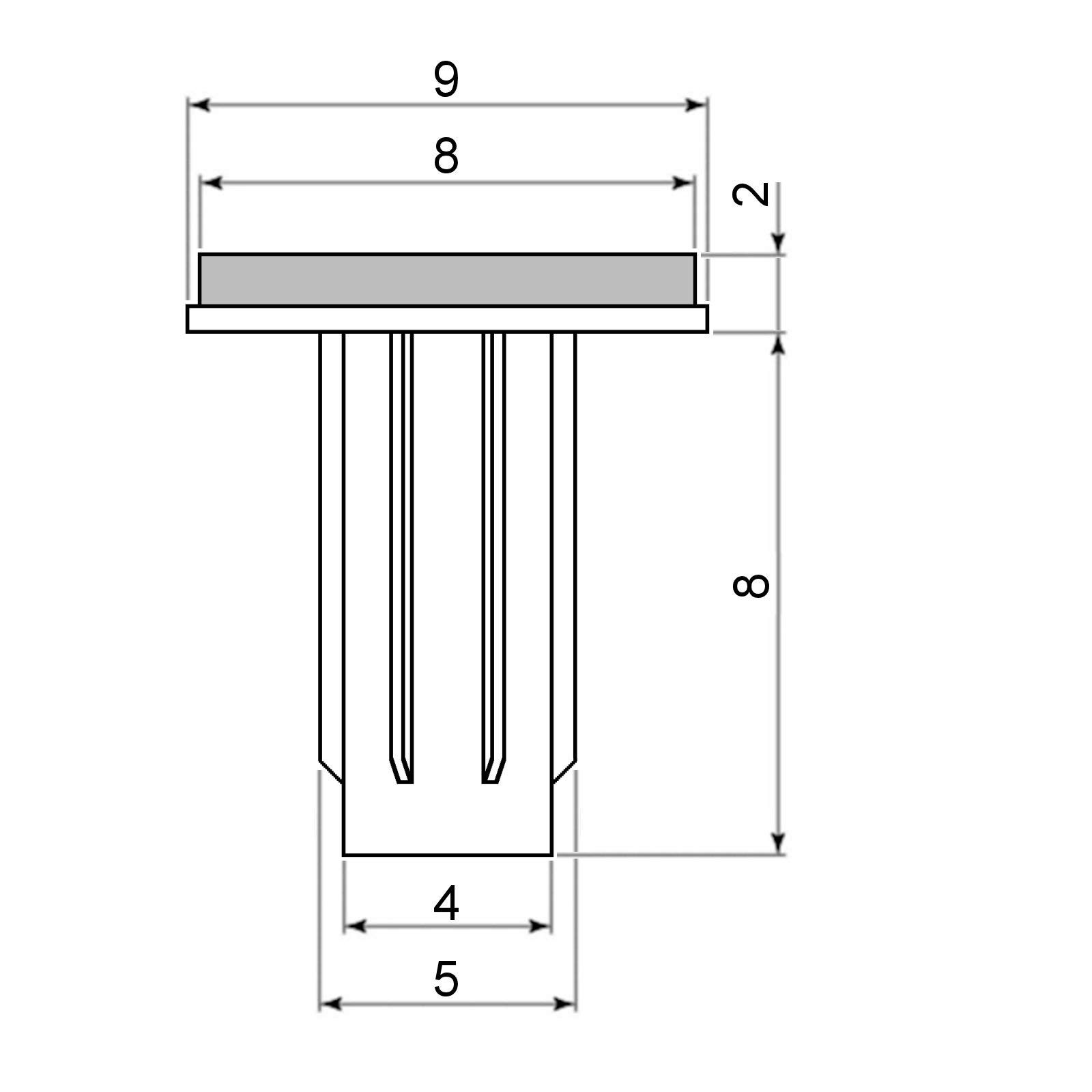 Abmessungen: Gesamtdurchmesser 9mm, Puffer-Durchmesser 8mm, Einbautiefe 8mm. Perfekt für Möbeltüren, Schubladen, Schränke und mehr.