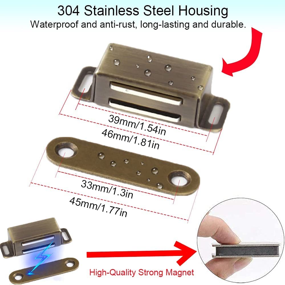 Endlich schließen alle Schranktüren perfekt! Diese 6 Magnetverschlüsse in Braun sind die Lösung für klappernde Türen und schlecht schließende Schränke. Mit starken Magneten halten sie Türen zuverlässig geschlossen und sorgen für eine gute Dichtwirkung. Perfekt für Küchen, Badezimmer, Schlafzimmer, Schränke, Schubladen oder sogar Wohnmobile. Die rostfreie und langlebige Ausführung eignet sich sogar für den Einsatz in feuchten Umgebungen oder im Freien. Einfach im Schrank installieren und von der sofortigen Verbesserung überzeugt sein! Die Verschlüsse halten hohen Schlagkräften stand und saugen sich fest mit dem Türkörper zusammen. Praktisches 6er-Set - genug für mehrere Schränke oder als Reserve. Mach deine Möbel endlich perfekt!