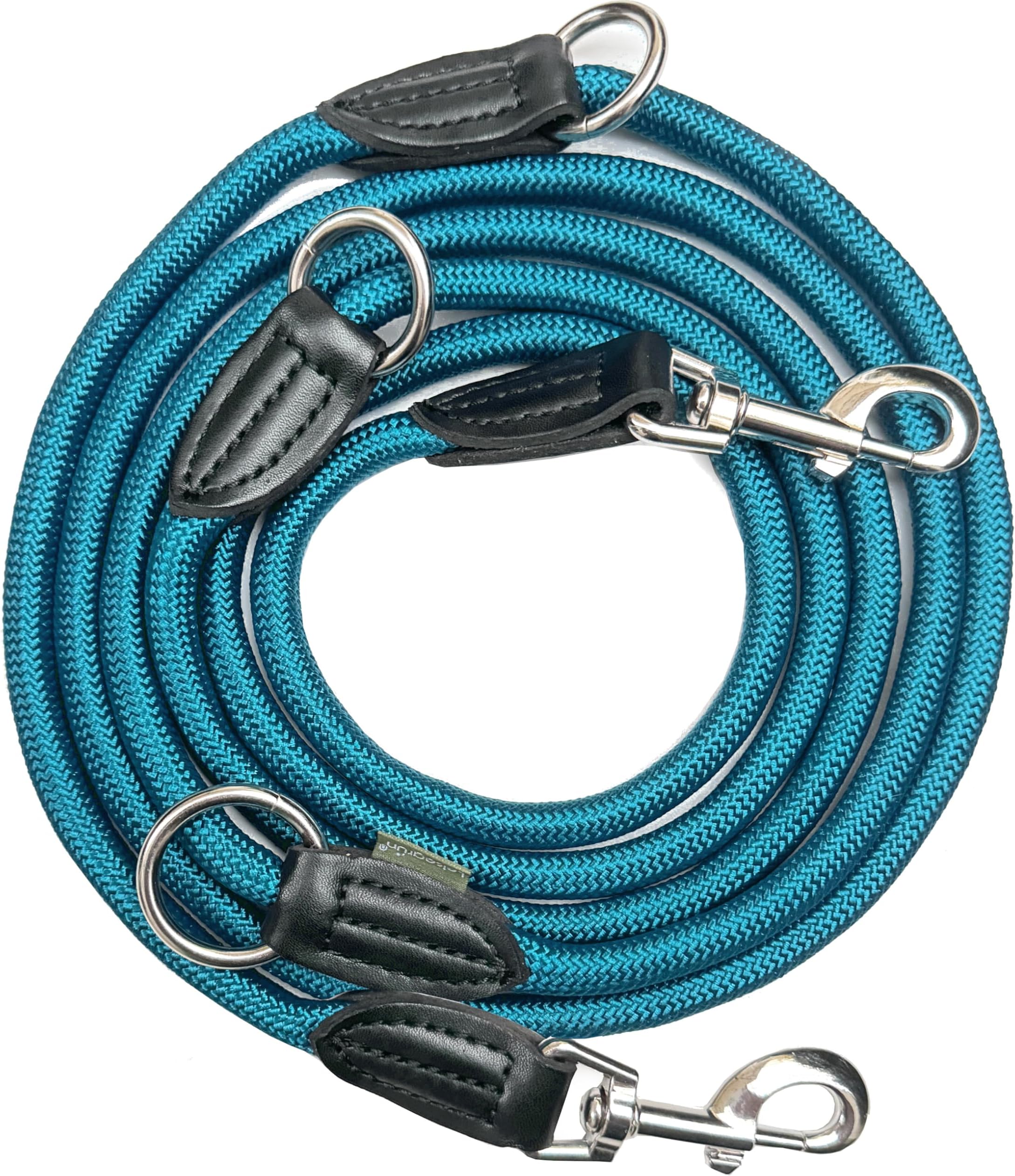 Spaziergang mit zwei Hunden oder mal kurz, mal lang führen? Diese CROSHER Hundeleine ist total vielseitig! Mit 3 Metern Länge und verstellbaren Optionen (100cm, 150cm, 190cm oder volle 300cm) passt sie sich jedem Bedarf an. Du kannst sie als Doppelleine für zwei Hunde verwenden oder einfach die Länge je nach Situation anpassen - ob in der Stadt oder auf dem Feldweg. Hergestellt aus robustem Kletterseil hält die Leine bis zu 200 kg aus - da kannst du auch kräftige Hunde sicher führen. Die beiden Karabiner aus hochwertiger Legierung sind super stabil und öffnen sich nicht versehentlich. Perfekt für mittelgroße bis große Hunde zwischen 10-50 kg. Und das Beste: Die Leine wiegt nur 360 Gramm! Sie liegt super angenehm in der Hand und ist trotz der Stabilität richtig leicht. Mit den drei O-Ringen hast du verschiedene Griffmöglichkeiten und kannst die Leine sogar als Bauchgurt verwenden. Ob für den täglichen Spaziergang, Training oder Urlaub - diese Leine macht einfach alles mit. Kein Gerenne mehr mit mehreren Leinen - alles in einem praktischen Produkt. Dein Hund wird's lieben und du auch!