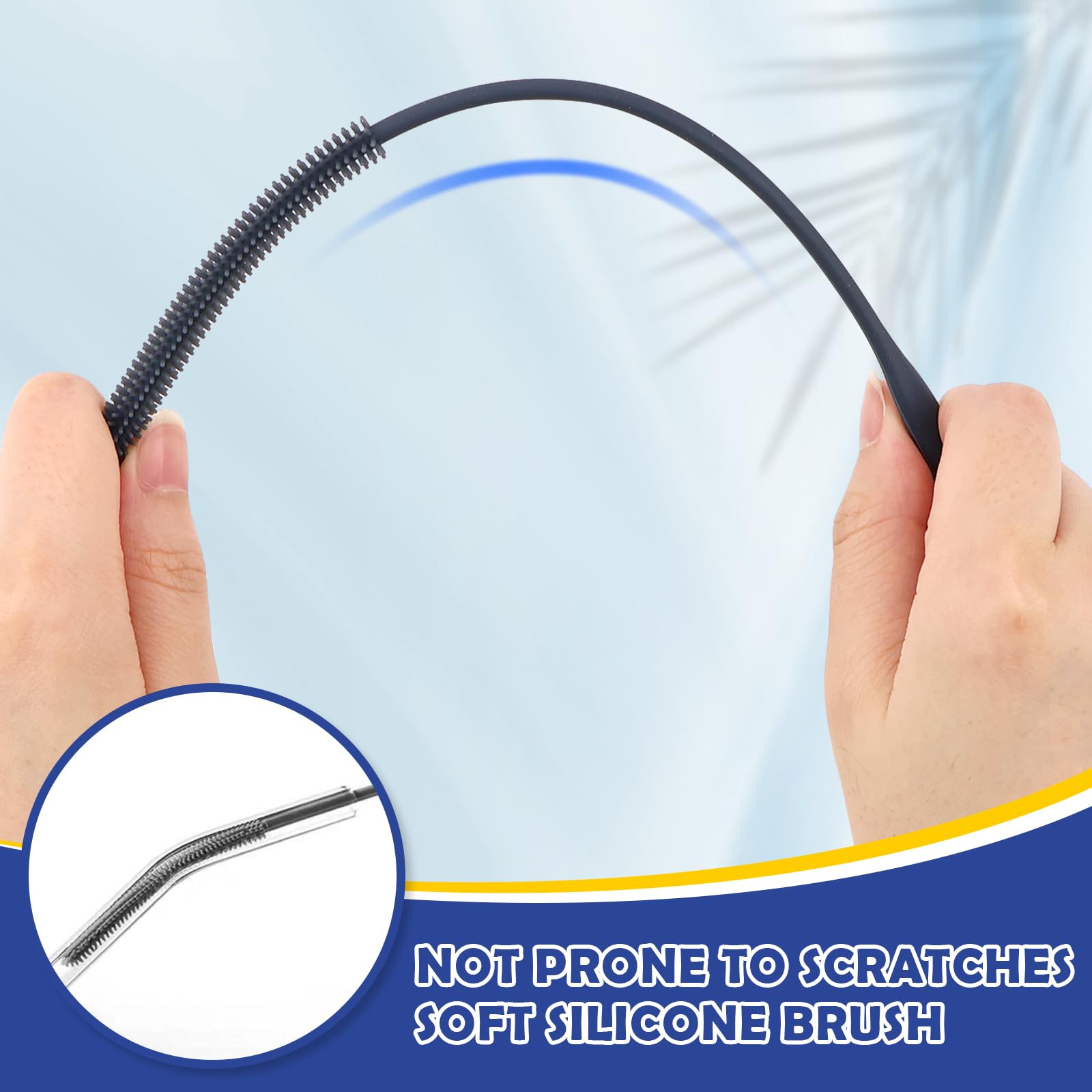 Kennst du das? Du hast diese tollen wiederverwendbaren Strohhalme, aber putzen ist immer so eine Fummelei? Mit diesen Silikon-Bürsten wird's super easy! Die Dinger sind 24 cm lang - damit kommst du auch in die tiefsten Ecken von Glas-, Metall- oder Silikon-Strohhalmen. Und weil sie so schön biegsam sind, kriegst du selbst gebogene Strohhalme blitzsauber. Made aus lebensmittelechtem Silikon, also absolut unbedenklich. Nach dem Putzen einfach mit Wasser abspülen oder in die Spülmaschine stecken - praktisch, oder? Mit dem Aufhängeleloch kannst du sie platzsparend verstauen. Perfekt für zu Hause, aber auch super für unterwegs. Übrigens: Die Bürsten eignen sich nicht nur für Strohhalme, sondern auch für Schnuller oder andere enge Utensilien. Im Set sind zwei Stück in dunklem Grau - so hast du immer eine Reserve parat!