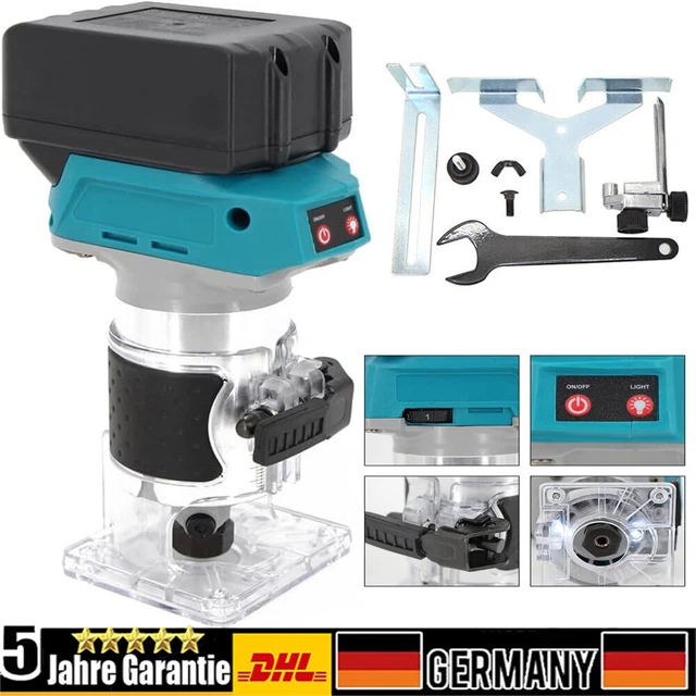 Für alle Makita-Fans: Diese Akku-Oberfräse ist ein Game-Changer für deine Holzprojekte! Kompatibel mit deinen vorhandenen Makita 18V Akkus - einfach draufstecken und losfräsen.\\n\\nDer bürstenlose Motor ist das Highlight: Bis zu 30.000 U/min für saubere Ergebnisse und lange Laufzeit. Du hast 5 Geschwindigkeitsstufen zur Auswahl (10.000-30.000 U/min) - perfekt abgestimmt auf verschiedene Hölzer und Fräsarbeiten.\\n\\nTechnische Details:\\n- Kompatibel mit Makita 18V B-Serie Akkus\\n- Bürstenloser Motor\\n- 5 Geschwindigkeitsstufen: 10.000-30.000 U/min\\n- Spannzangen: 6mm, 6,35mm, 8mm\\n- Material: ABS-Kunststoff + Metall\\n\\nDie transparente Abdeckung ist genial - du siehst immer genau was du tust und das Sägemehl bleibt da wo es hingehört. Perfekt für:\\n- Kanten fräsen und abrunden\\n- Nuten und Aussparungen\\n- Möbelbau und Schränke\\n- Holzverbindungen\\n- Kreative Holzprojekte\\n\\nWichtiger Hinweis: Kompatibel mit B-Serie Akkus wie BL1850B, BL1840B etc. Nicht kompatibel mit G-Serie! Ohne Akku und Ladegerät - nutze einfach deine vorhandenen Makita Akkus.\\n\\nKabellos, kraftvoll und präzise - so macht Holzwerken Spaß!